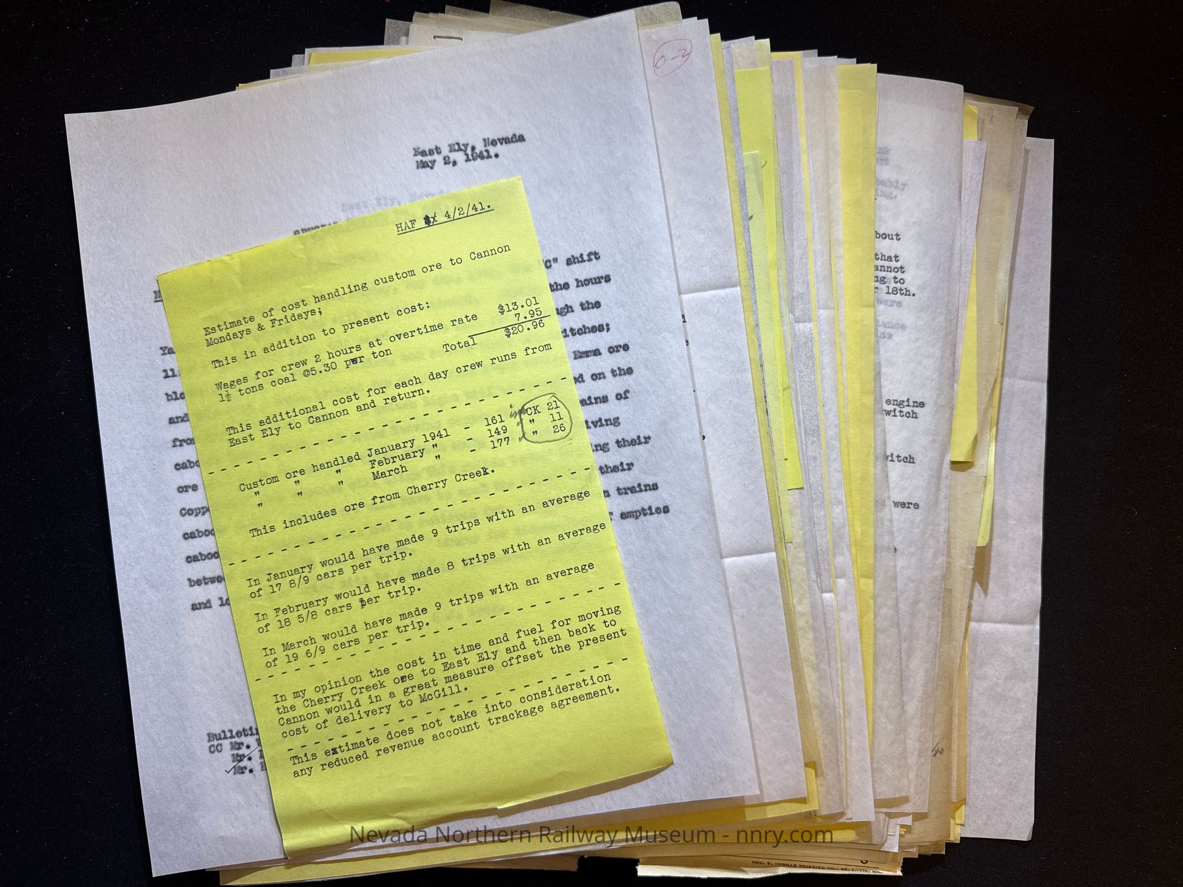 Various correspondence and other materials regarding ore service, 1934-1941.