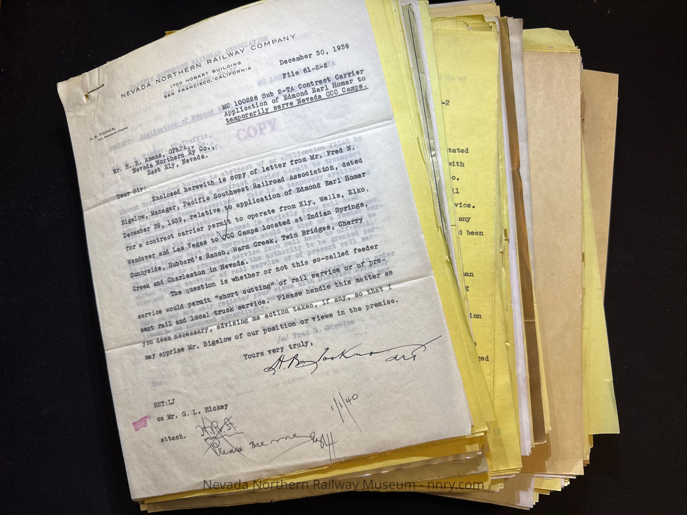 Correspondence regarding a contract carrier permit for Edmond Earl Homer to operate to the CCC camps, requesting comment from the NNRy, 1939.Creator