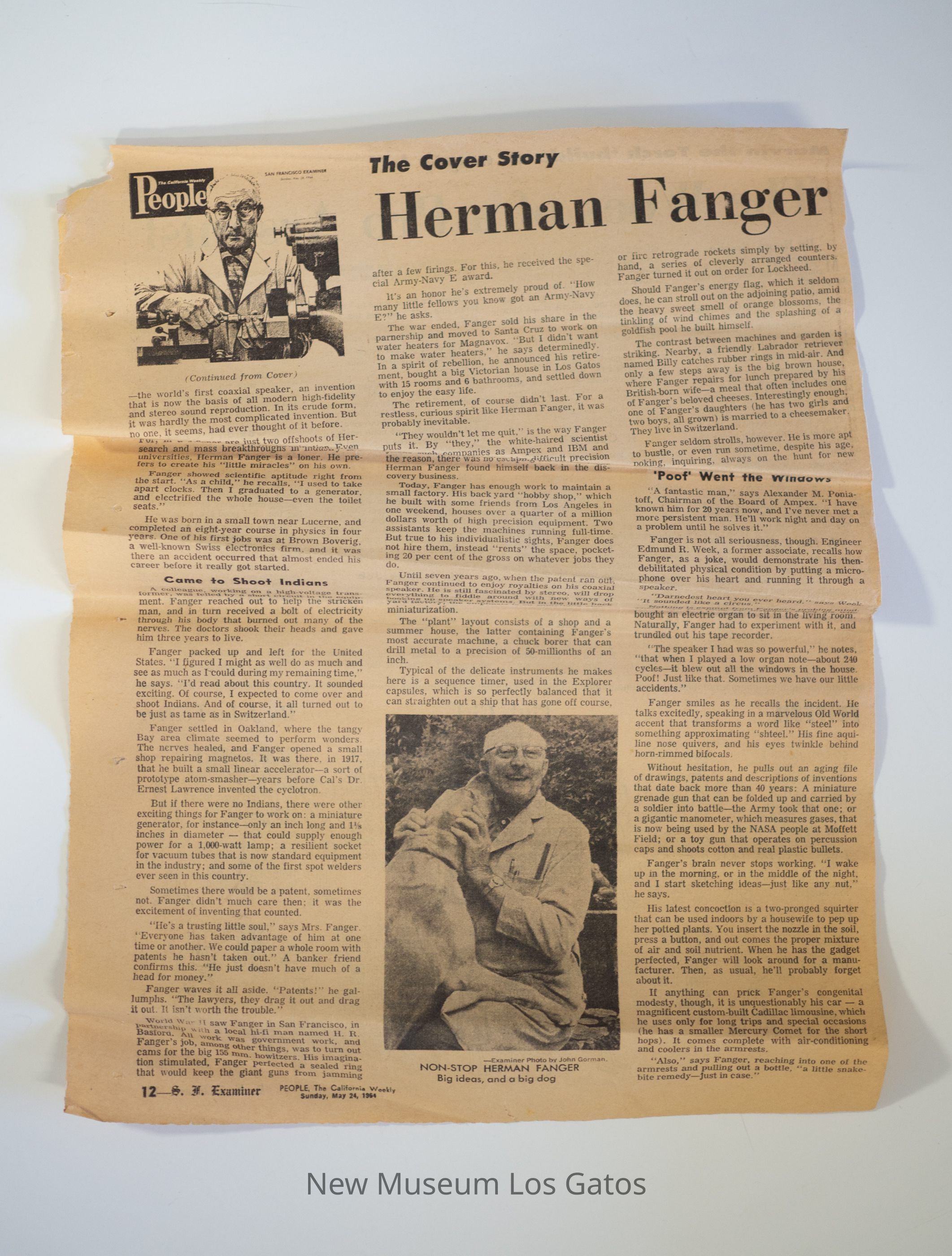 A clipping about Swiss inventor, Herman Fanger.Collection