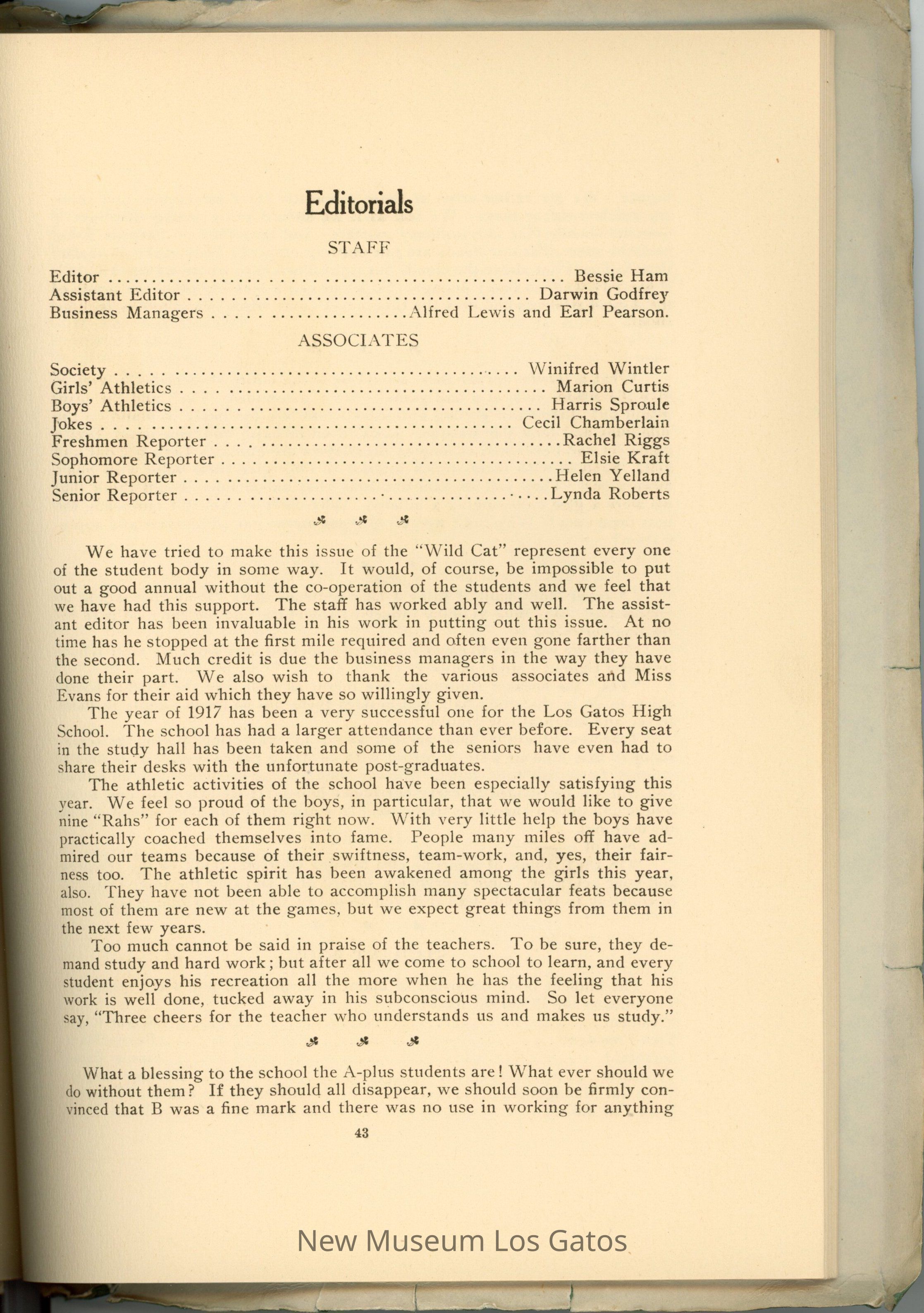 The Wildcat, a literary magazine/yearbook published by the students of Los Gatos High School in June 1917. Volume number and issue number are not specified in this particular issue.