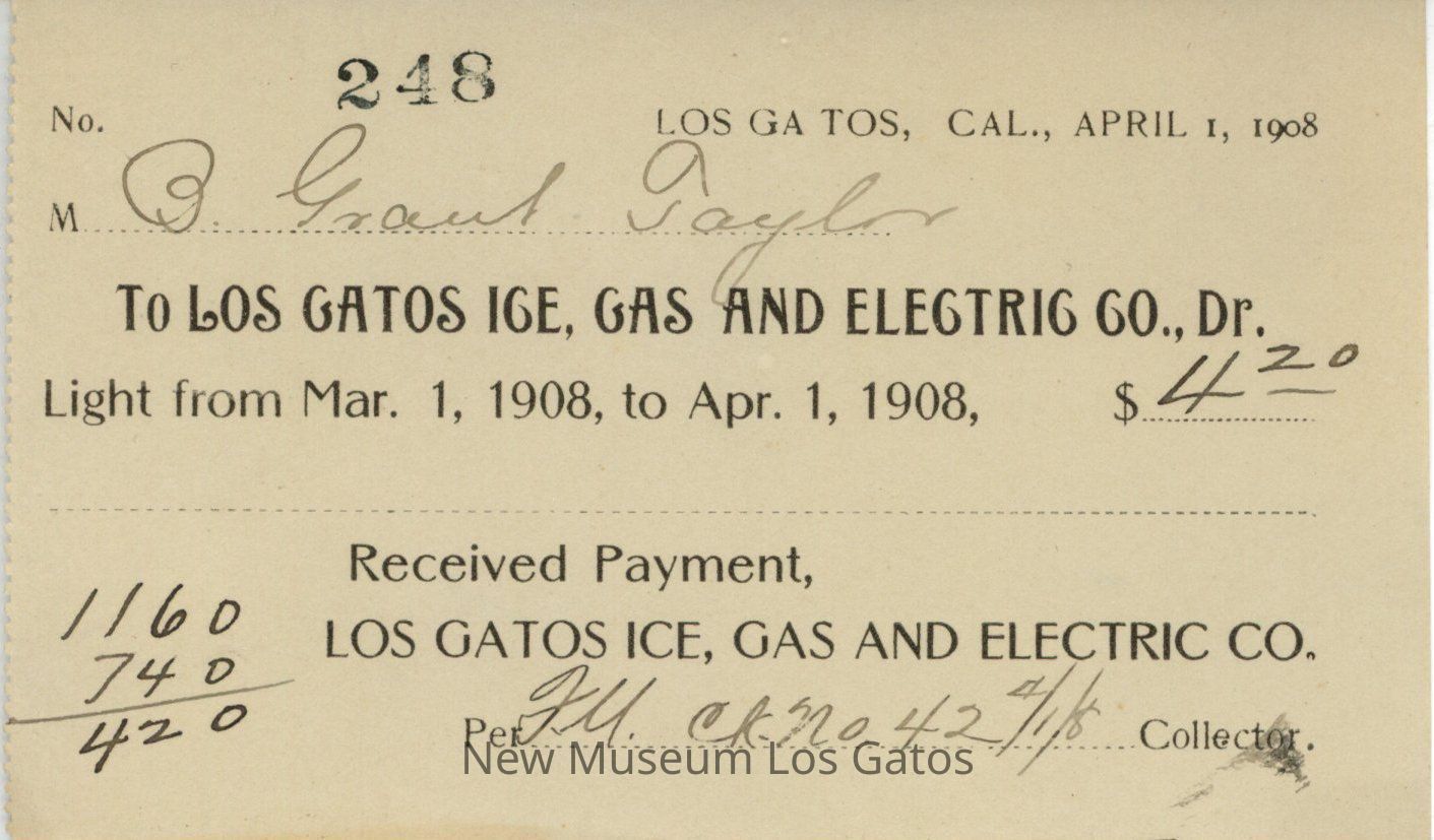 Los Gatos Ice, Gas, and Electric Company ReceiptDescription