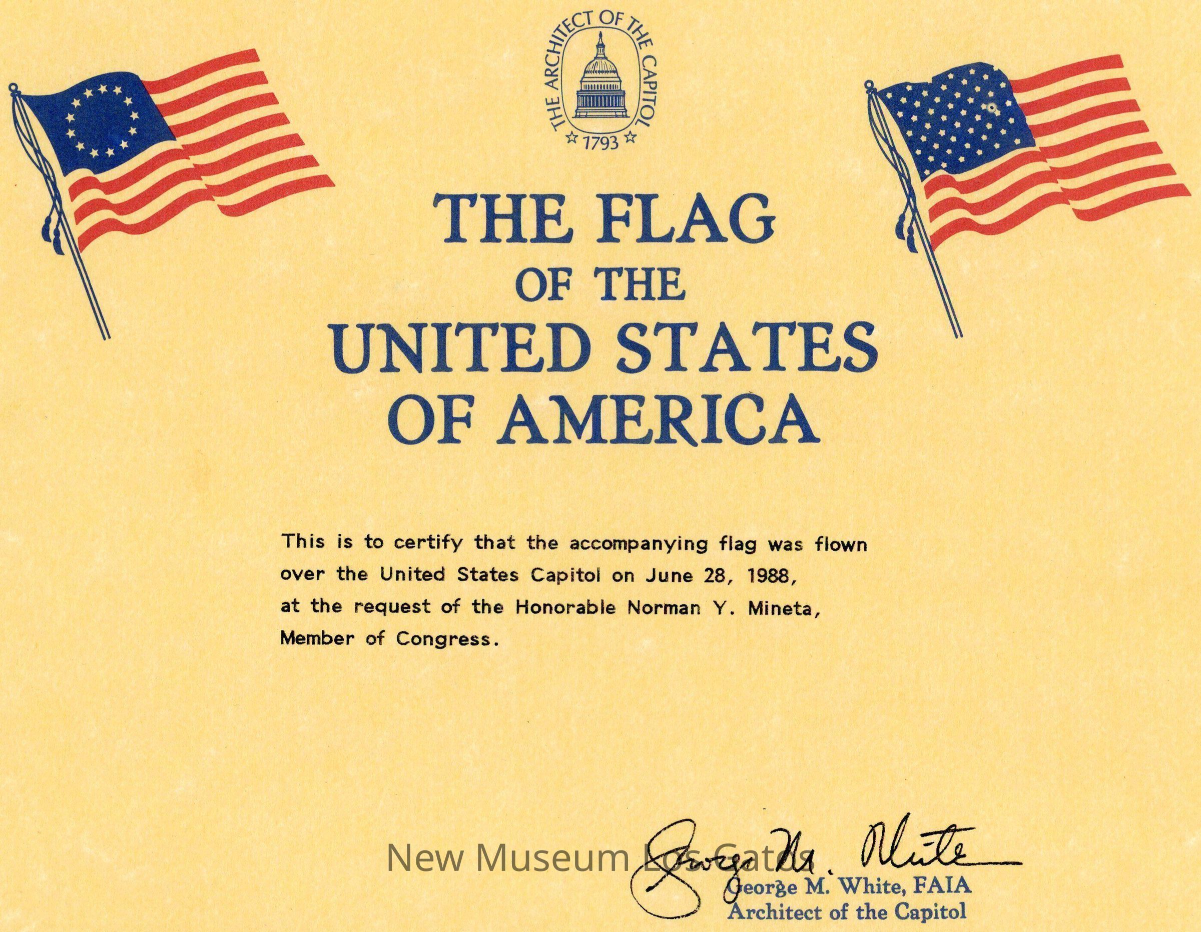 Requested that this flag was flown above the U.S. Capitol (see certificate)