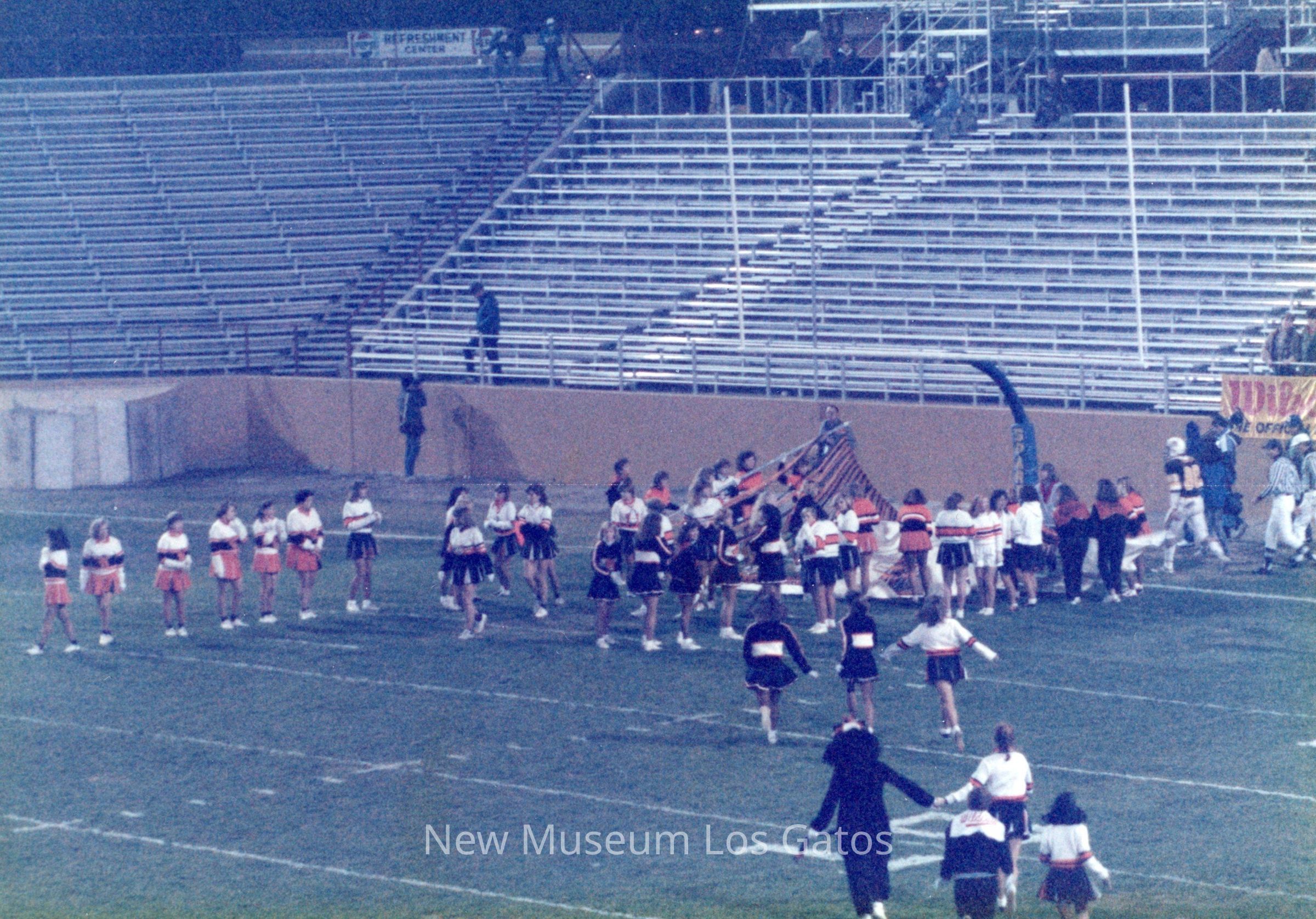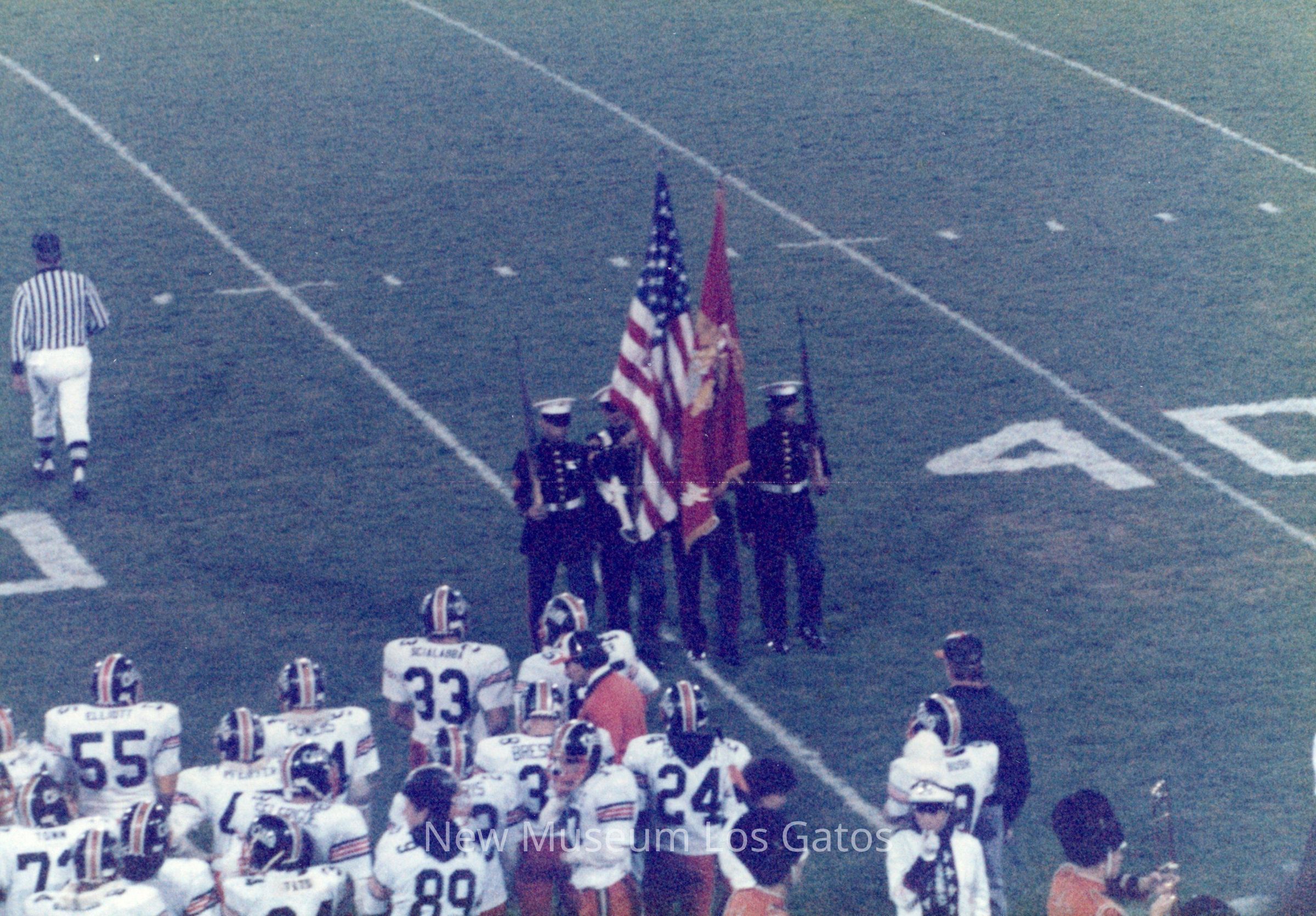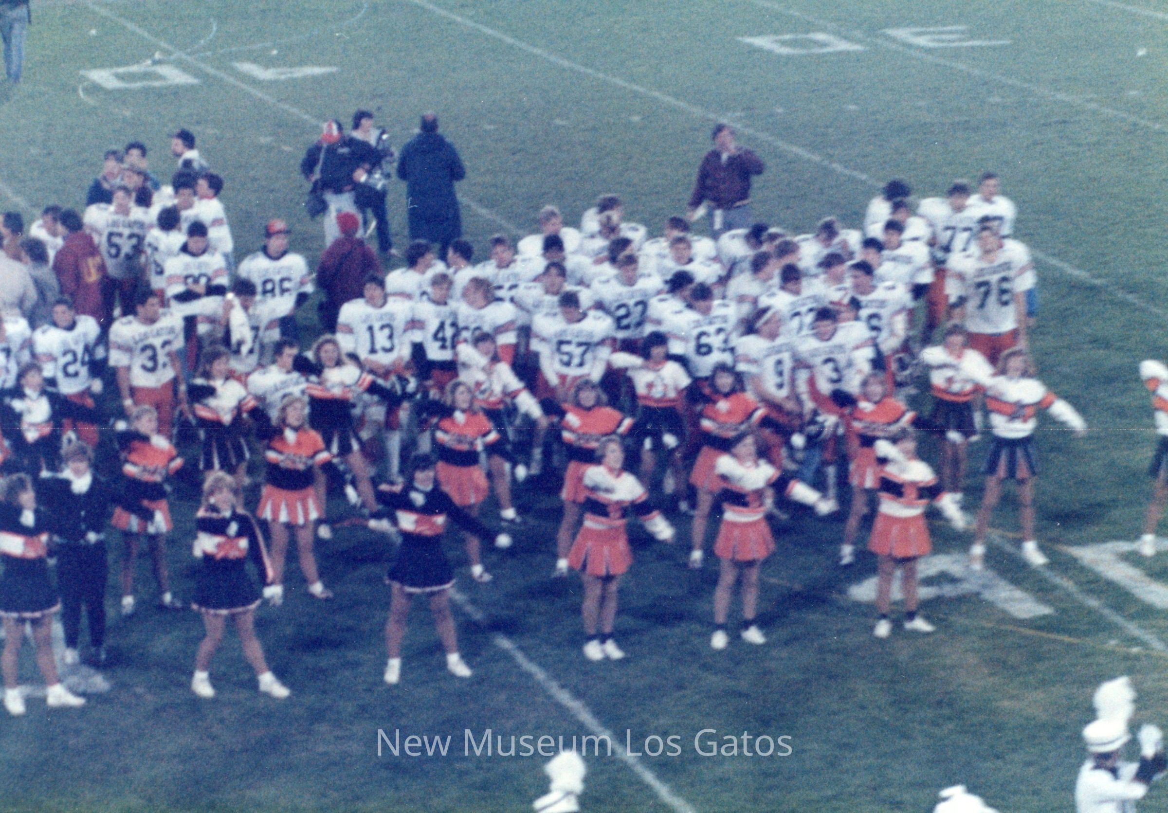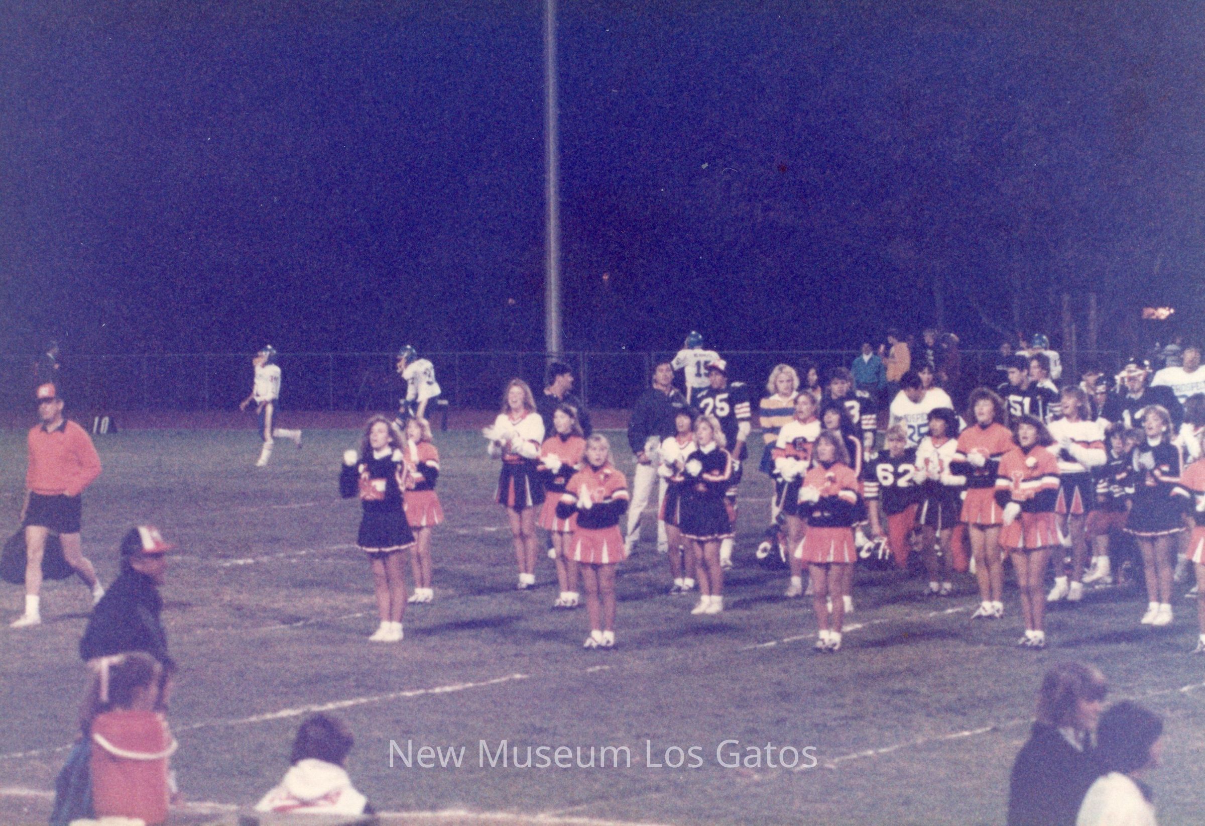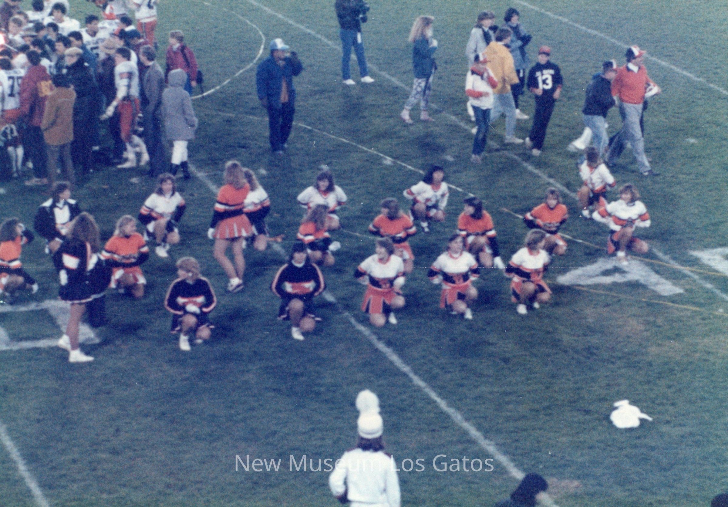 A set of sixteen color photographs of the 1987 football game between Los Gatos High School and St. Francis High School. The sixteen photographs depict scenes from the opening ceremonies, cheerleading performances, the football game itself, and the cheerleaders on the sidelines.Photograph Details