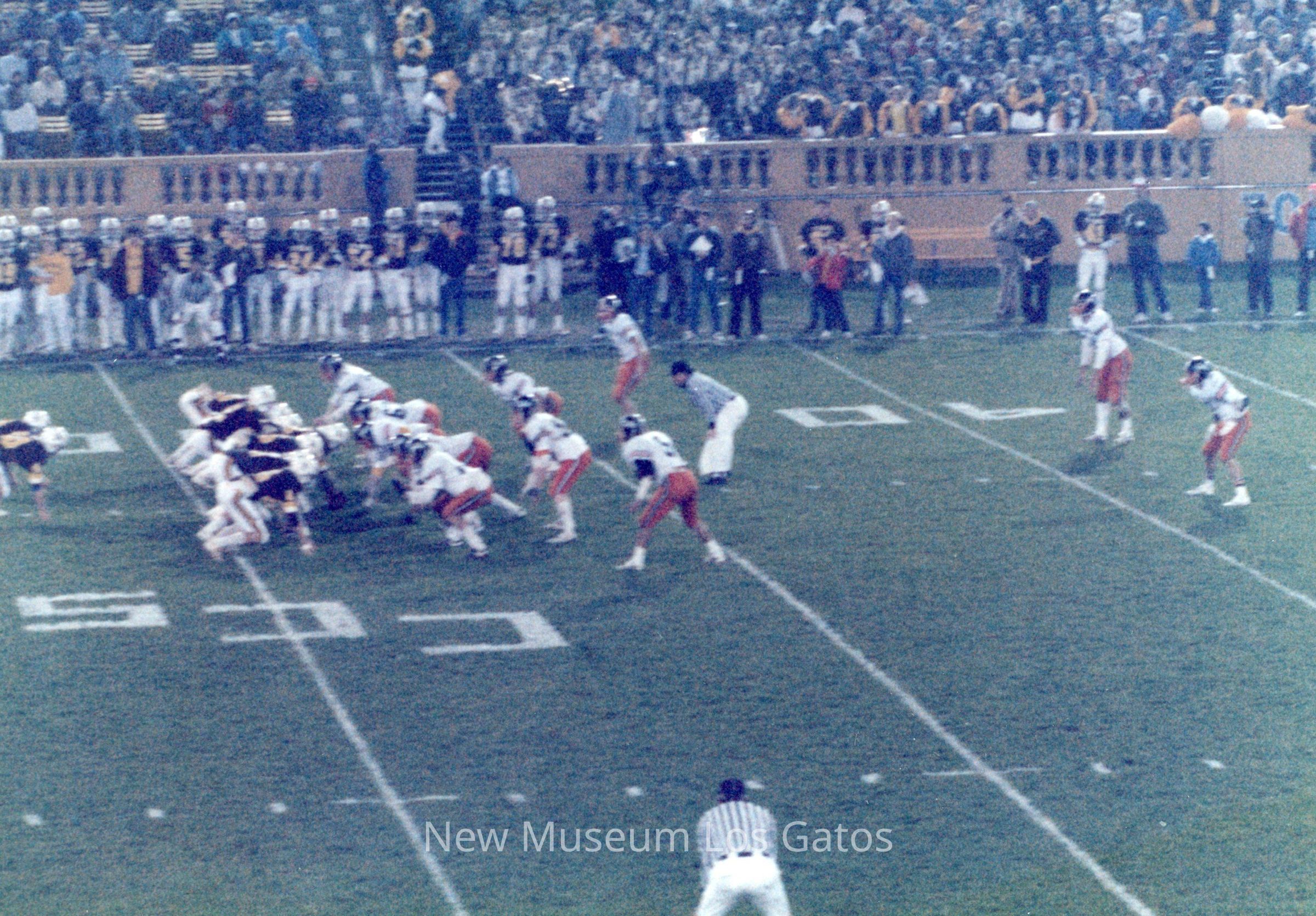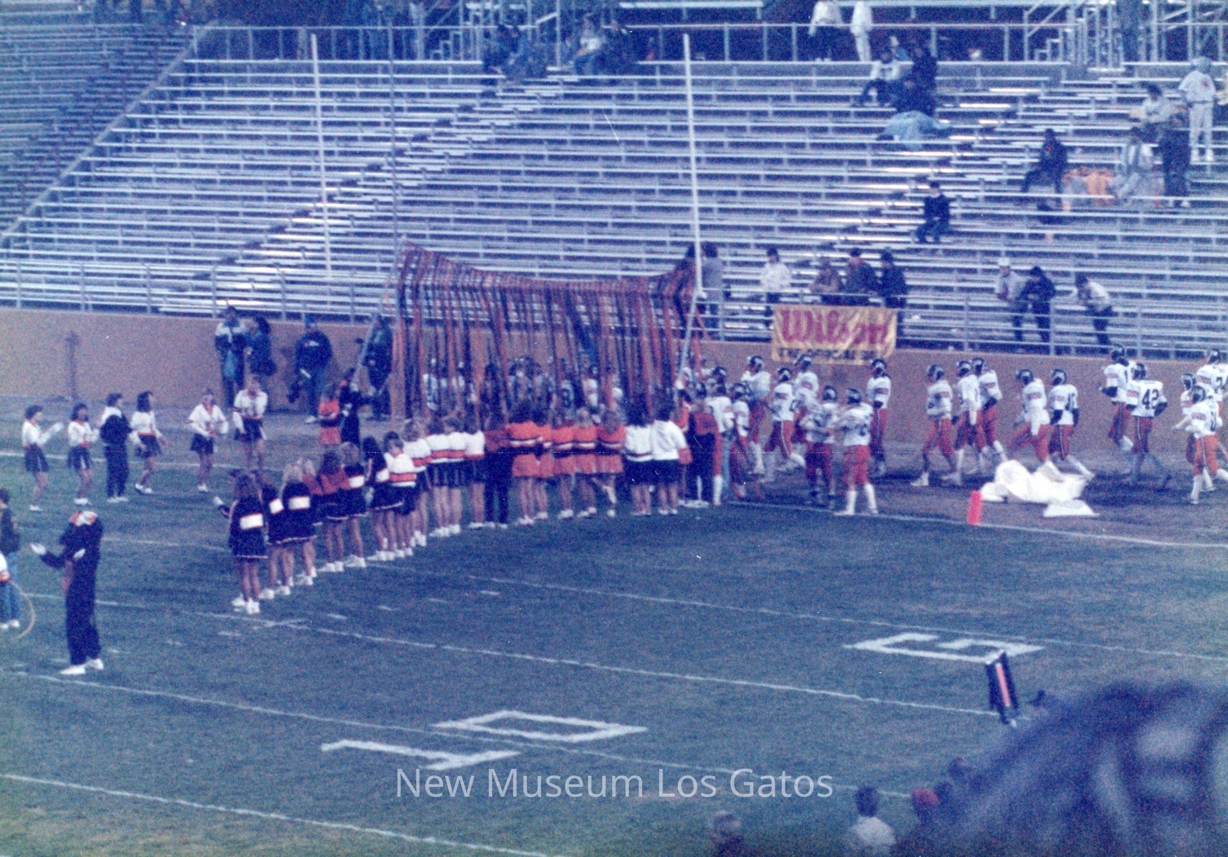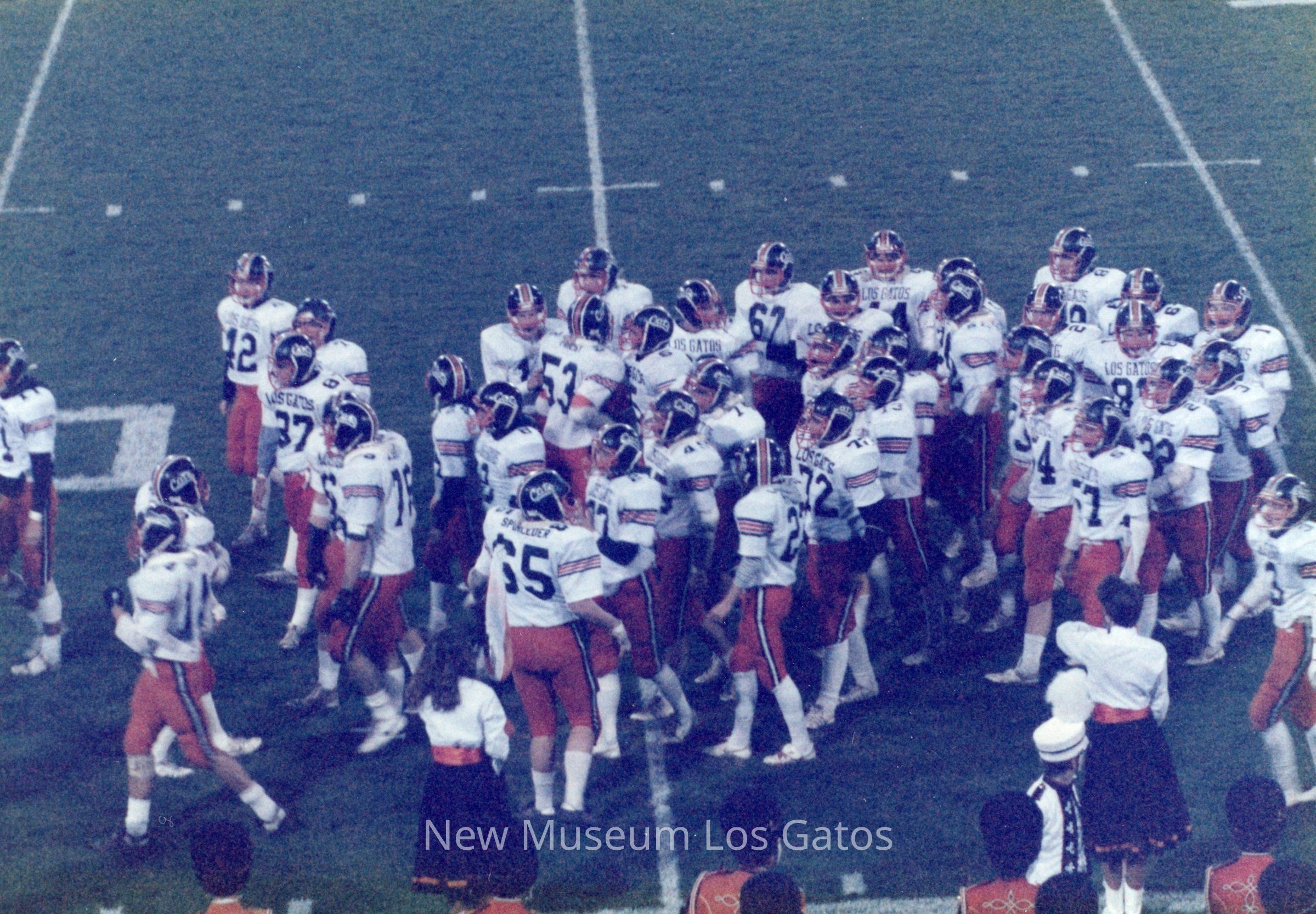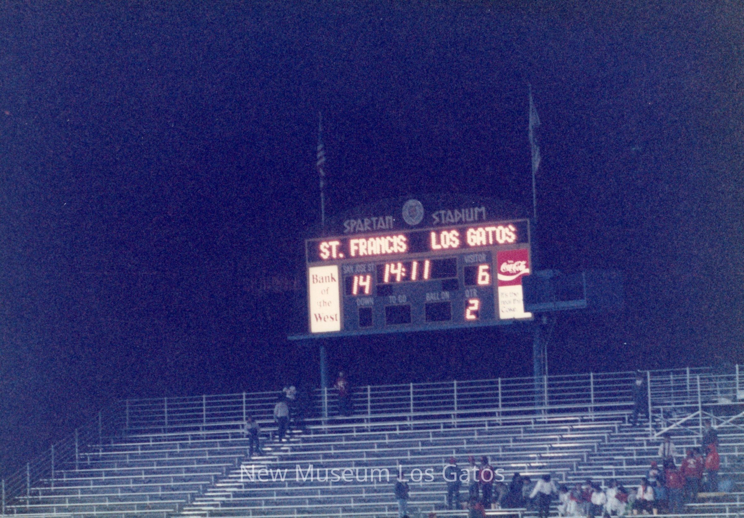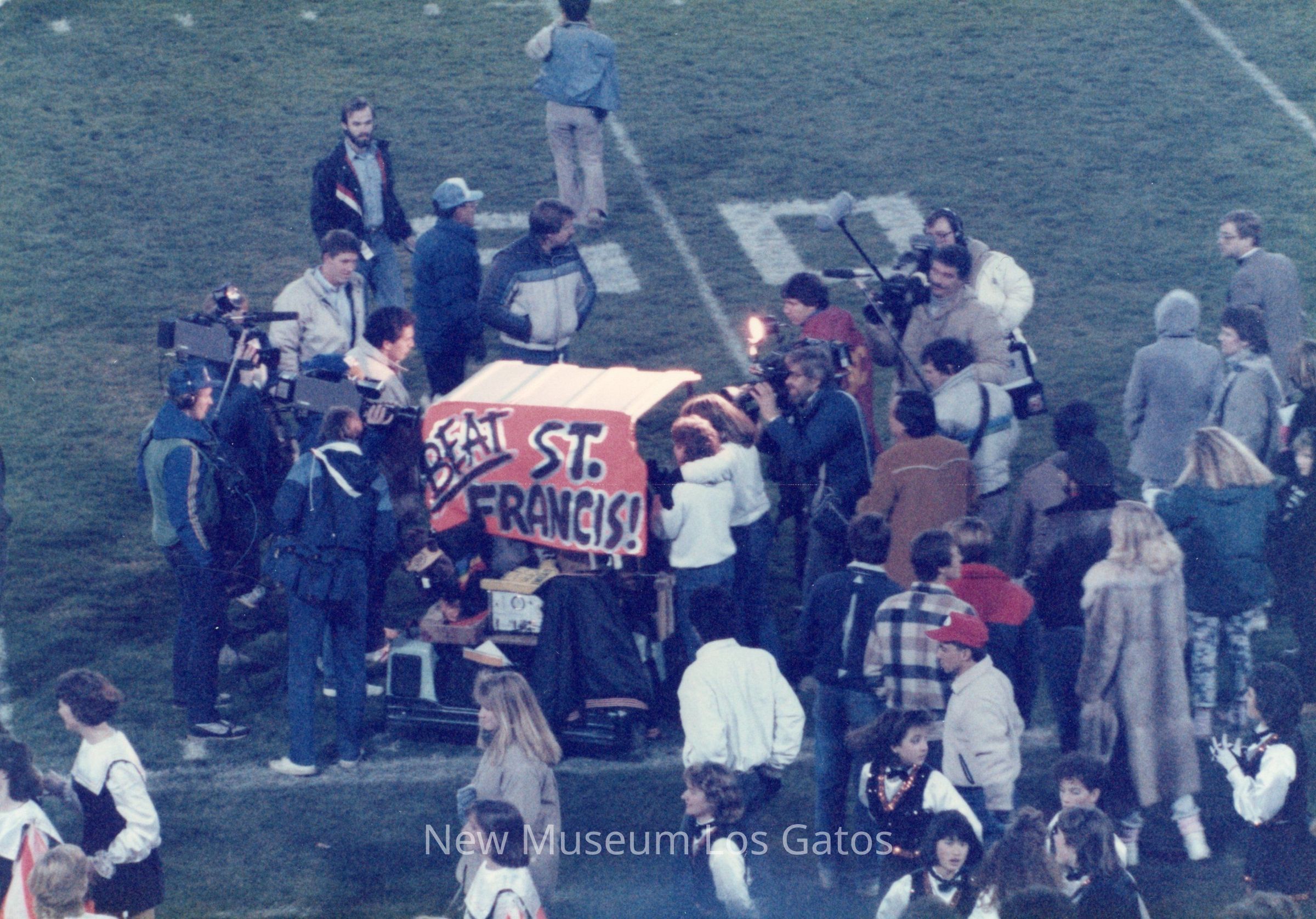 A set of sixteen color photographs of the 1987 football game between Los Gatos High School and St. Francis High School. The sixteen photographs depict scenes from the opening ceremonies, cheerleading performances, the football game itself, and the cheerleaders on the sidelines.Photograph Details