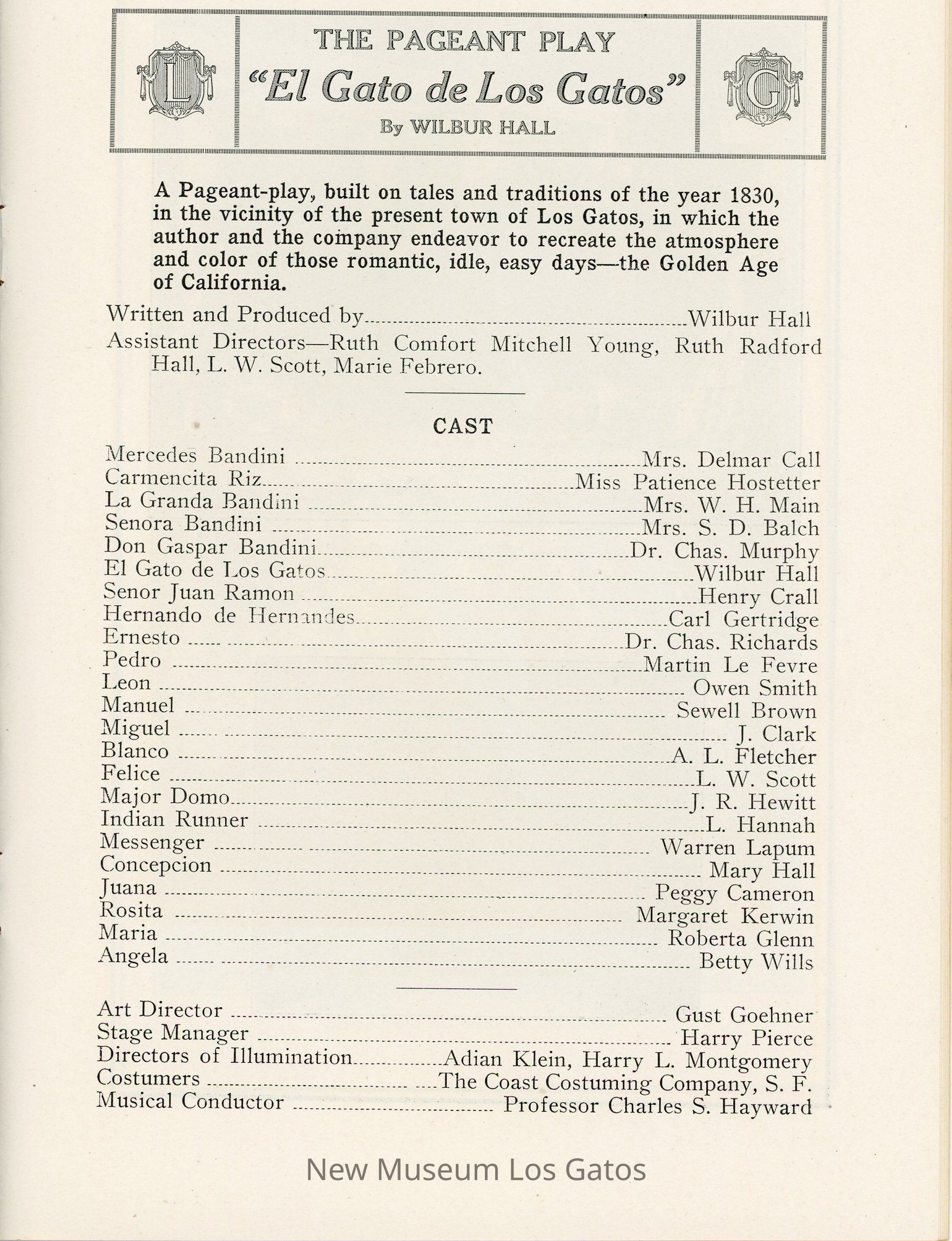 The official souvenir program for the 1924 edition of the Los Gatos Pageant, which took place on June 20 and 21, 1924. The program contains advertisements, cast lists, pictures, and other information about the pageant.Collection