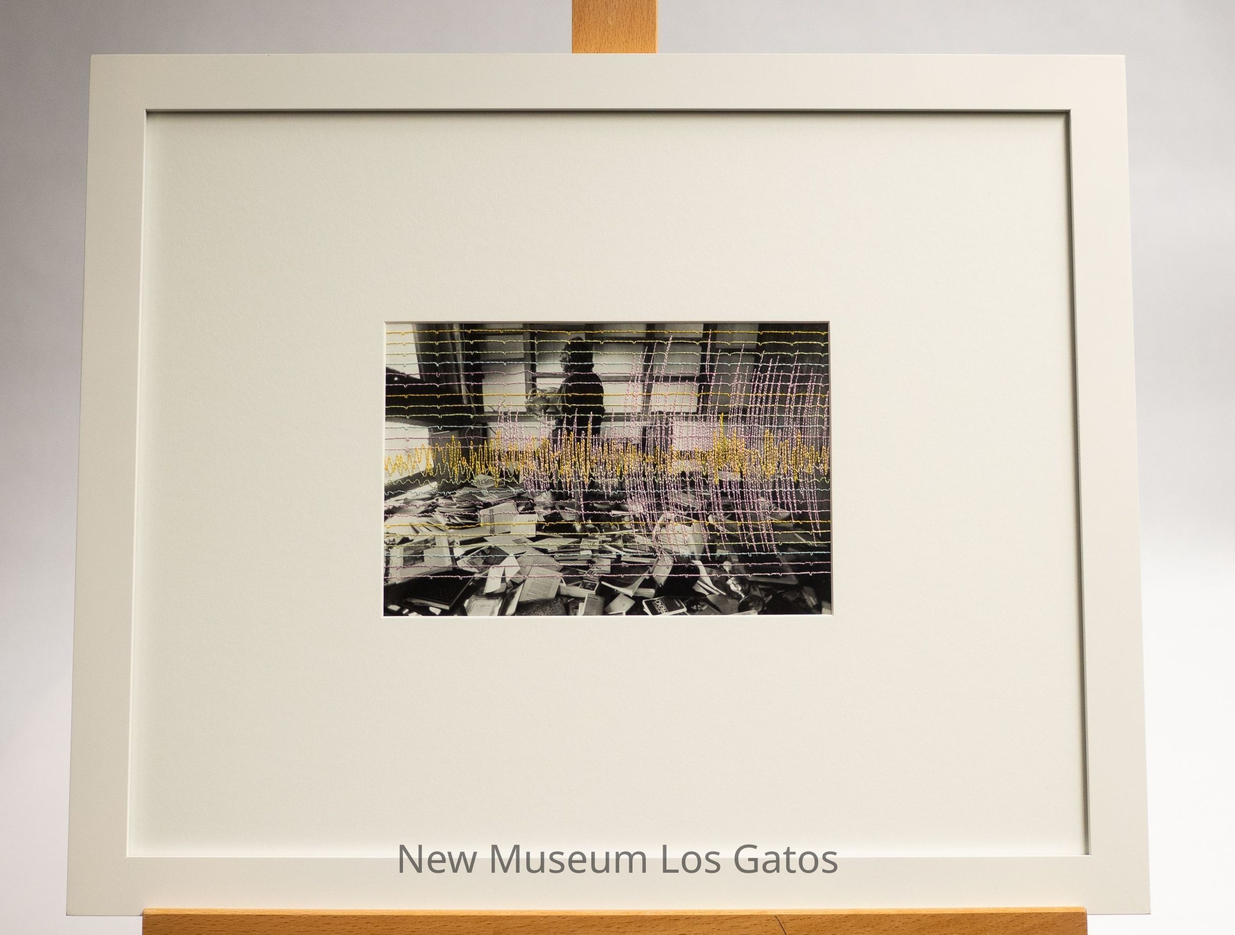 I began embroidering silk rainbows onto vintage photographs and postcards at the beginning of the pandemic as a meditation on how to remain grateful as I focused on wonder, awe, and hope on challenging days. I like to look to the past to remind myself of the long perspective where we as individuals, as a community, as a people, and as a place have endured and blossomed and continue to grow. In this series, that I have created especially for NUMU and its Director’s Circle, I hope to honor the love that we have for Los Gatos; infusing the feeling and the promise of a rainbow into these worn fragments of the past – a reminder to always strive to make our future bright as well.