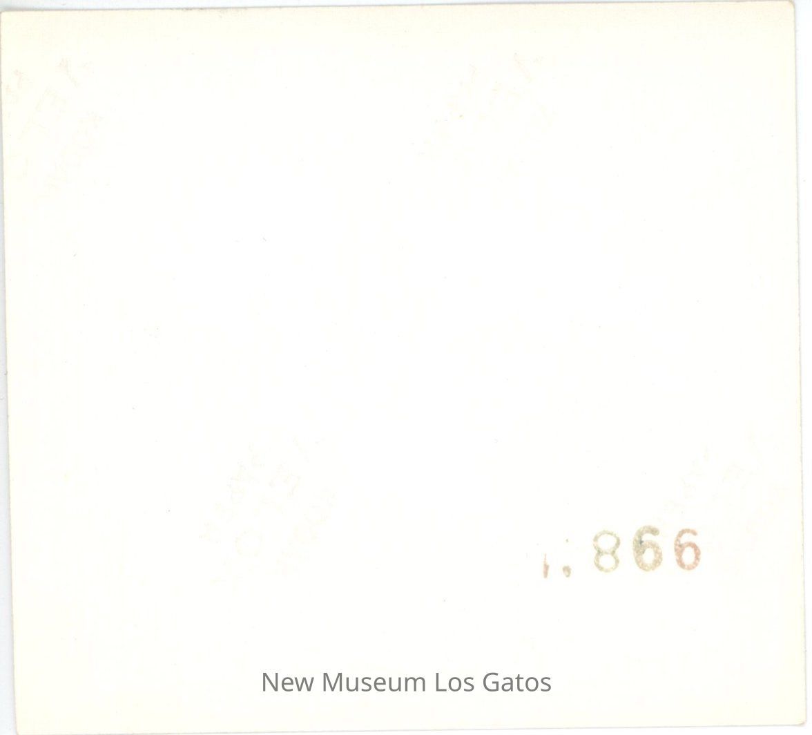 A black and white photograph featuring a steam engine with the number "3" on its front. The steam engine is in the center of the image, with other types of train cars off to its right side. The image is surrounded by a white border.