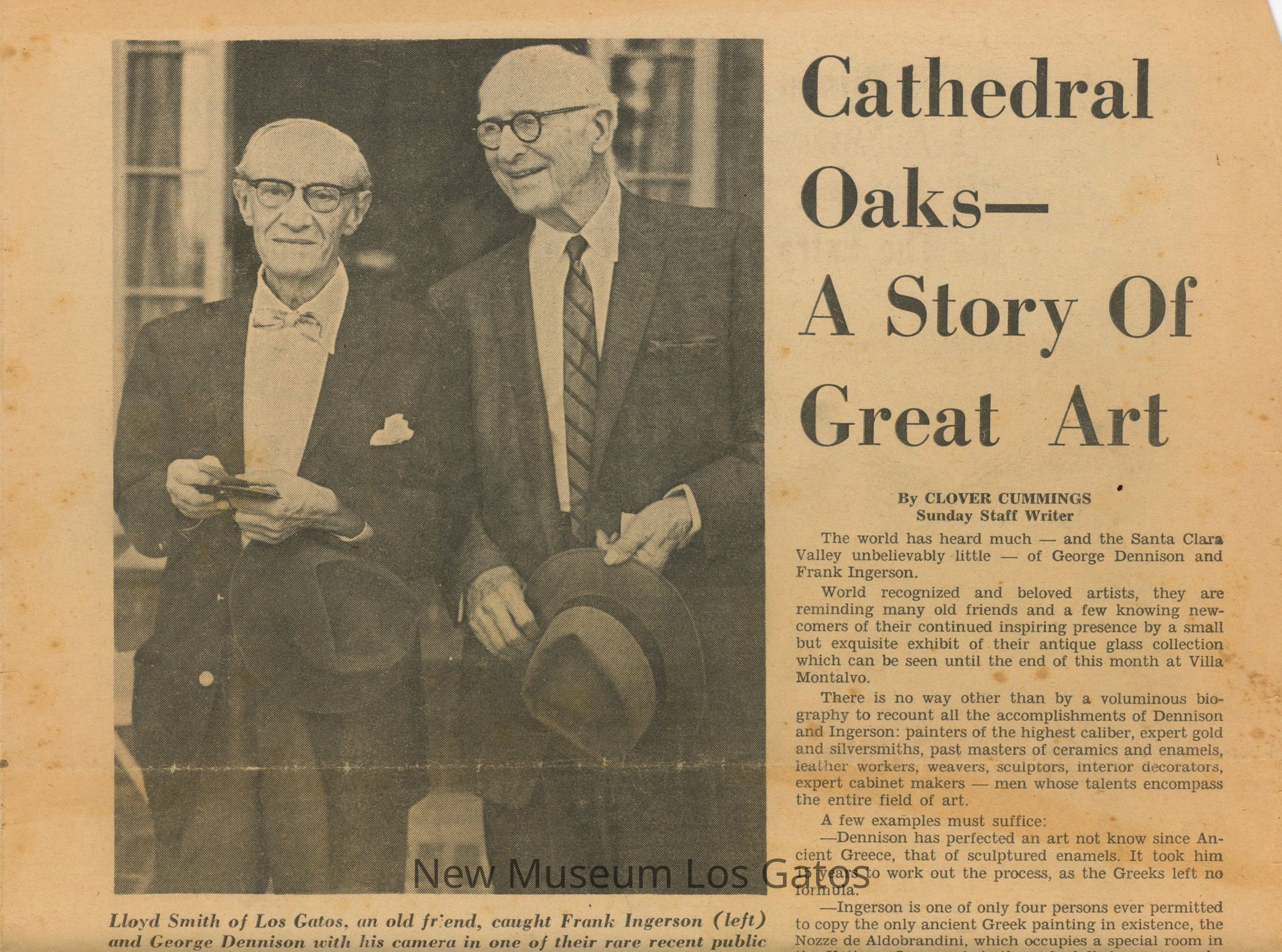 Pages 7-10 from the San Jose Mercury News, Sunday January 27th, 1963. The saved article details information on the home of Frank Ingerson and George Dennison, also known as Cathedral Oaks.Collection