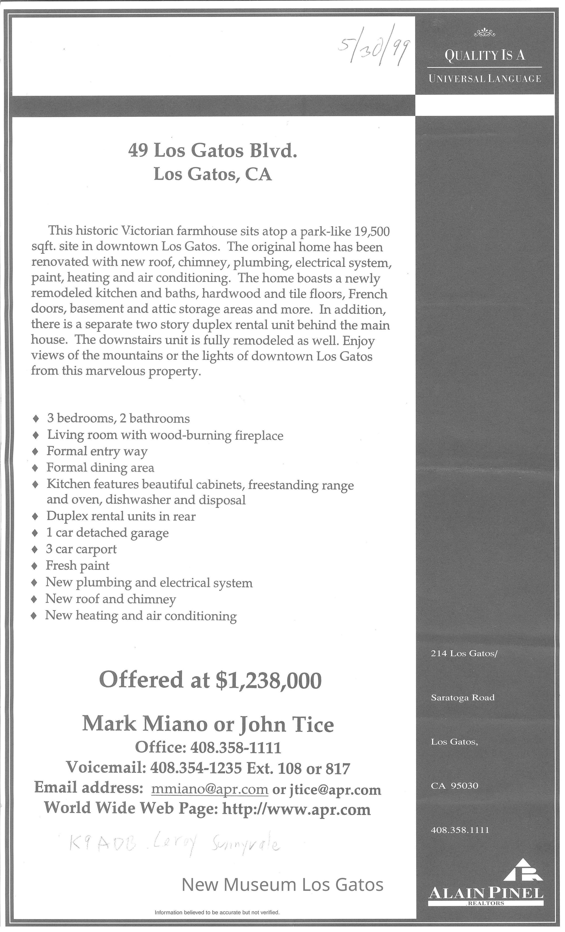 49 Los Gatos BoulevardEntry/Object ID