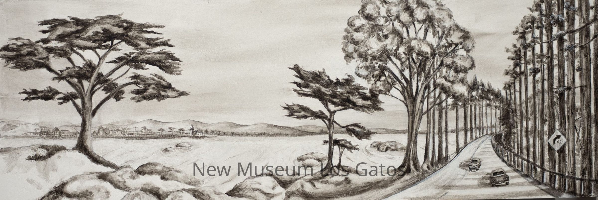 A black and white polyptych landscape painting of Los Gatos.Type of Painting
