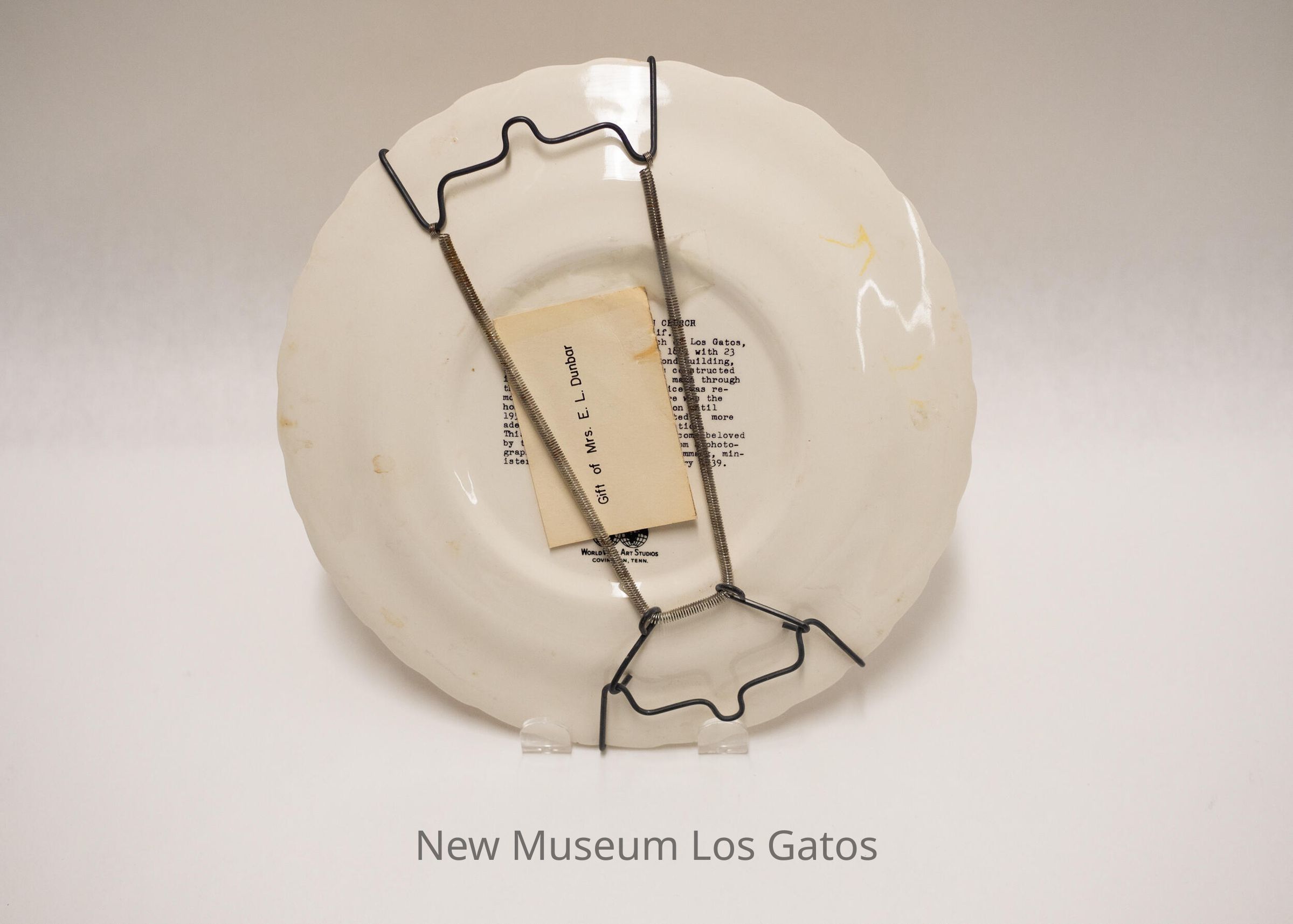 FIRST PRESBYTERIAN CHURCH / Los Gatos, Calif. / The First Presbyterian Church of Los Gatos, California, was organized in 1881 with 23 members. Pictured is its second building, the main portion of which was constructed in 1888. Three additions were made through the years and the entire edifice was remodeled in 1938. This structure was the home of the growing congregation until 1953 when its 731 members erected a more adequate building at a new location. This reproduction, which has become beloved by the congregation, is made from a photograph taken by Nottley Stever Hammack, minister of the church since February 1939.Language