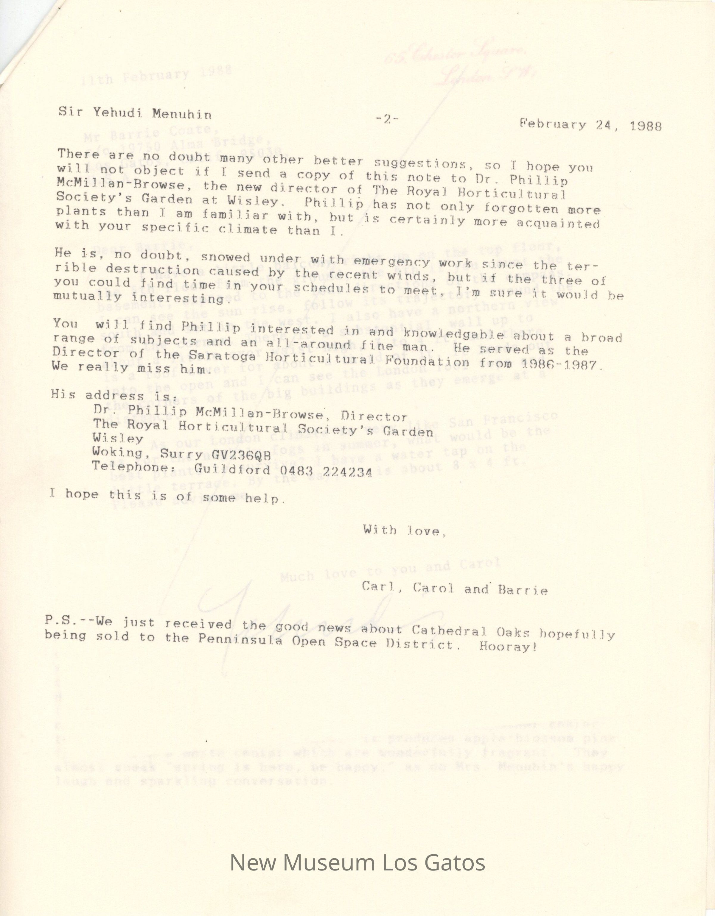 You will find Phillip interested in and knowledgable about a broad range of subjects and an all-around fine man. He served as the Director of the Saratoga Horticultural Foundation from 198601987. We really miss him.