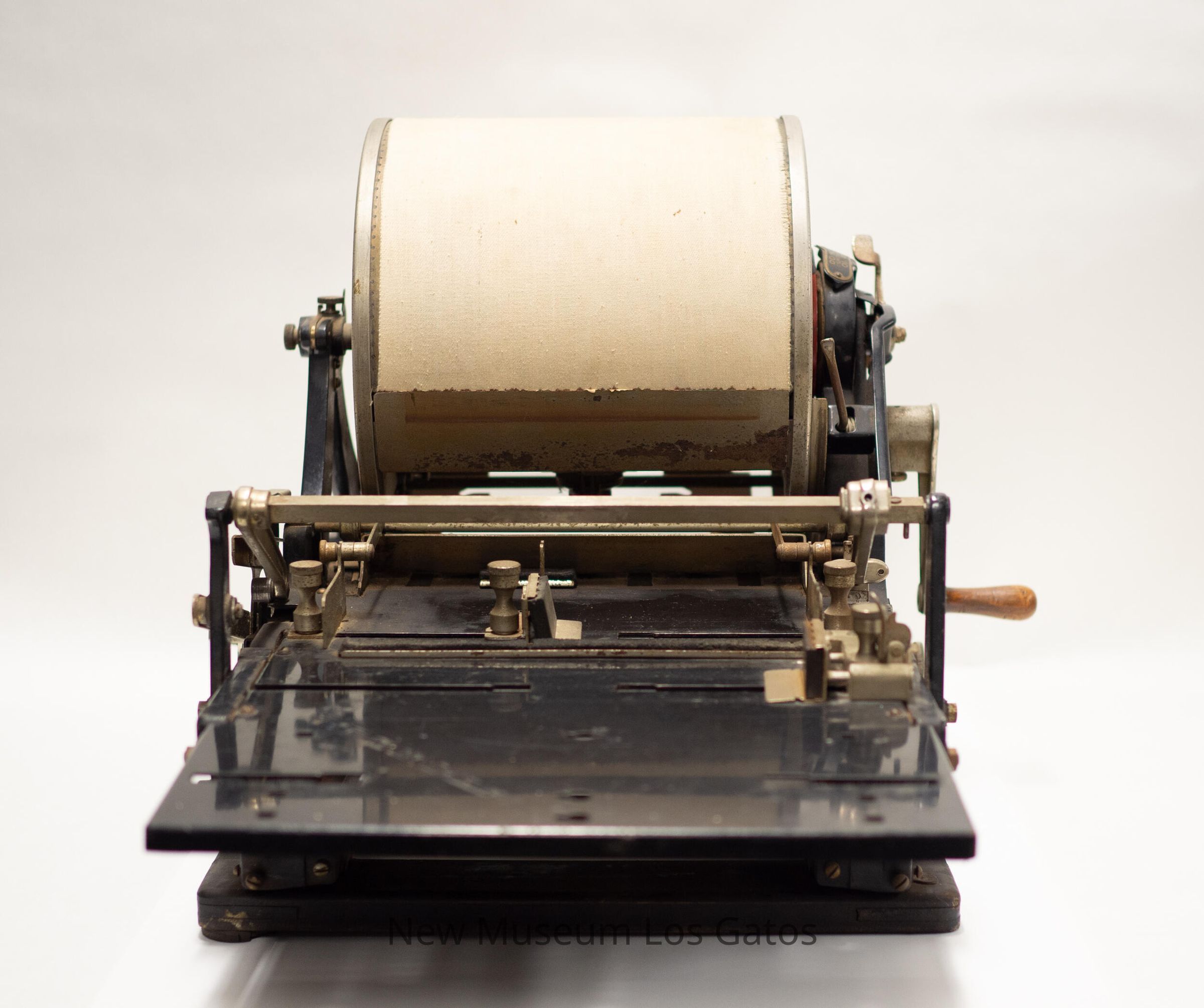 EDISON-DICK MIMEOGRAPH / REG. IN U.S. PATENT OFFICE / NO. 77 MODEL B SERIAL NO. 58221[star] / GUARANTEE / THIS MACHINE IS GUARANTEED TO GIVE SATISFACTORY RESULTS WHEN USED WITH STENCIL PAPER, INK AND OTHER SUPPLIES BEARING OUR NAME. WHEN SO USED EXPERT SERVICE ATTENTION IS AVAILABLE WHEN REQUIRED. / A. B. DICK COMPANY, CHICAGO, U.S.A. / MADE IN U.S.A.Language