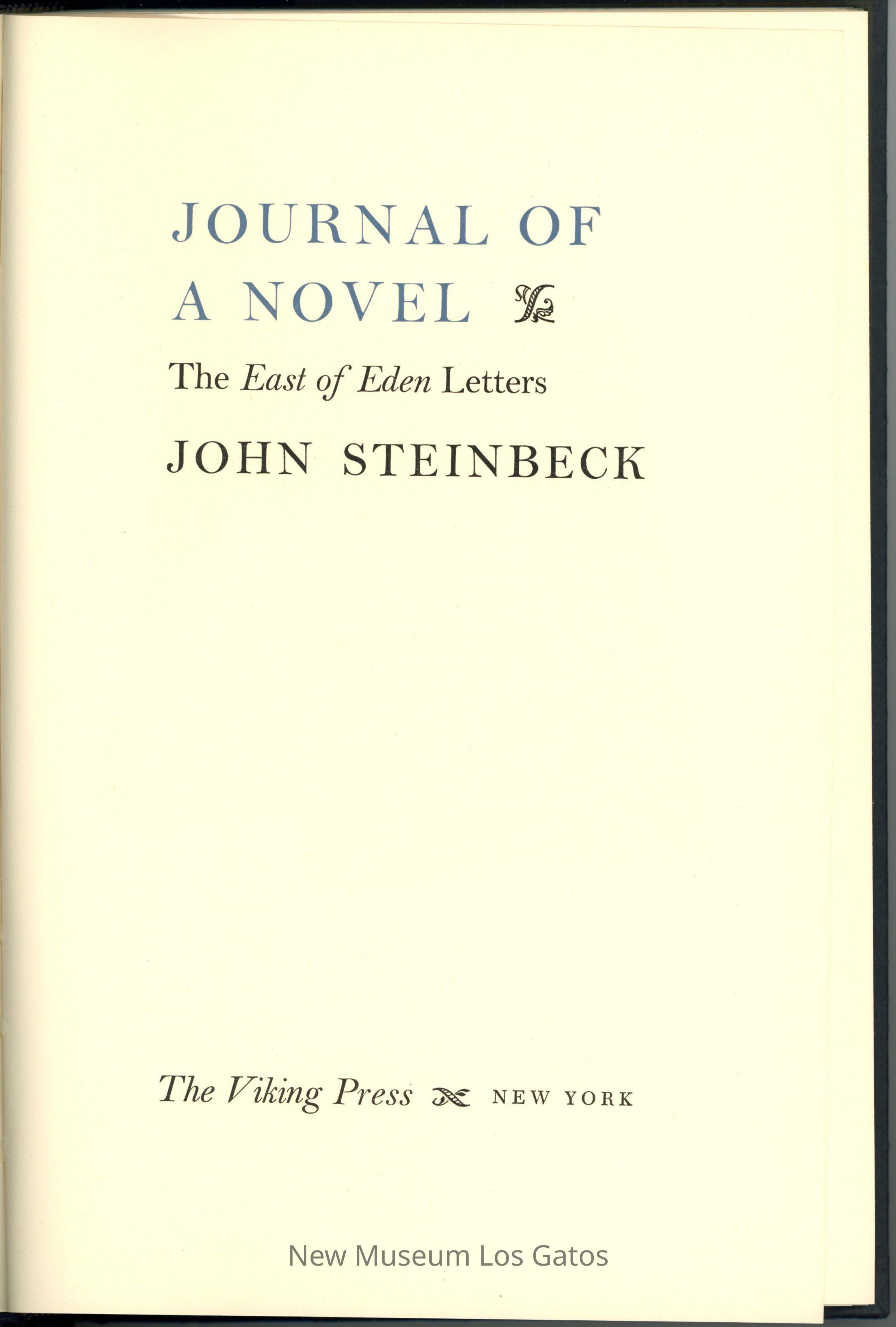 John Steinbeck JOURNAL OF A NOVEL / The East of Eden Letters VIKINGNotes