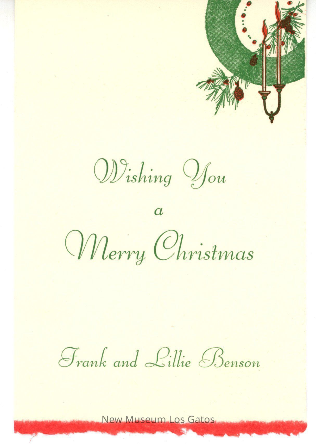 Blue paper booklet of self-published poems and verses by author Frank H. Benson. There is a Christmas card tucked into the book from the author.Collection