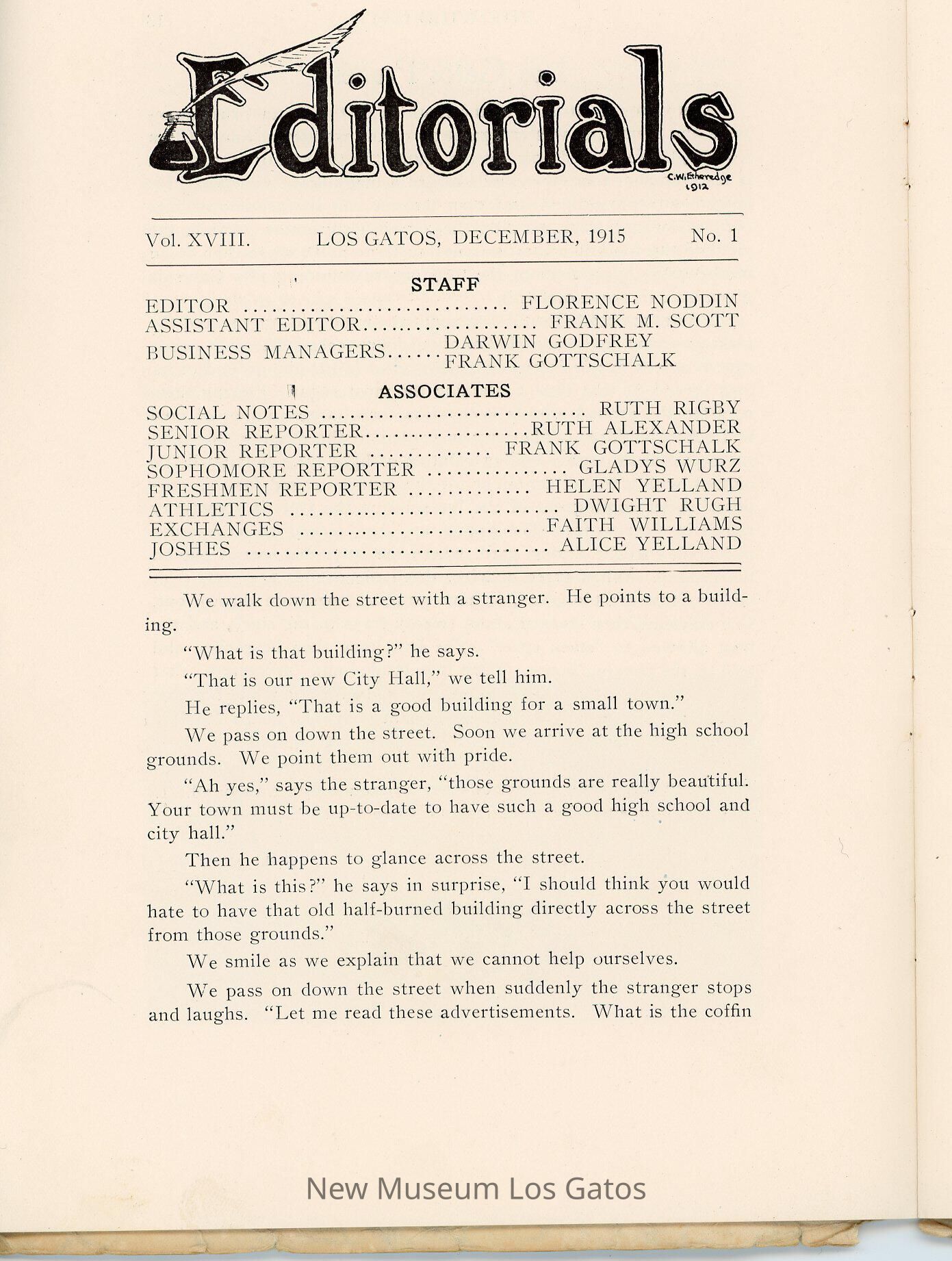 The Wildcat, a literary magazine/yearbook published by the students of Los Gatos High School, Volume 18, Number 1, published December 1915.
