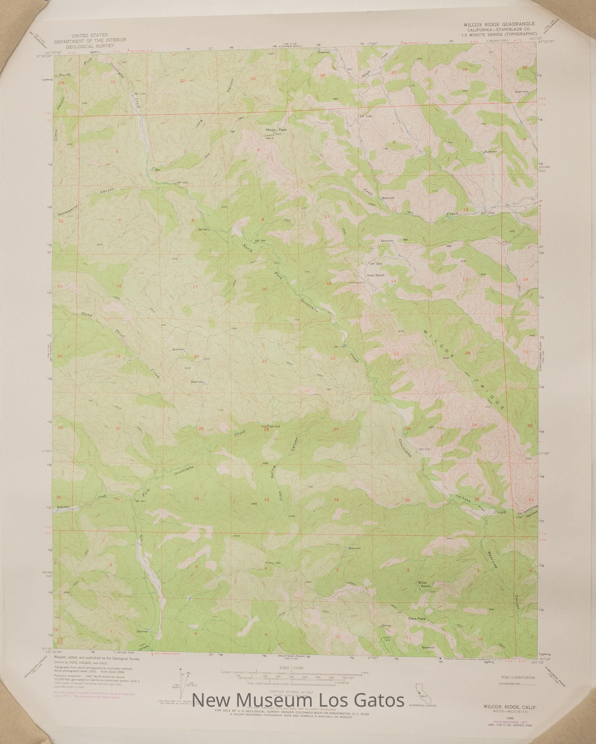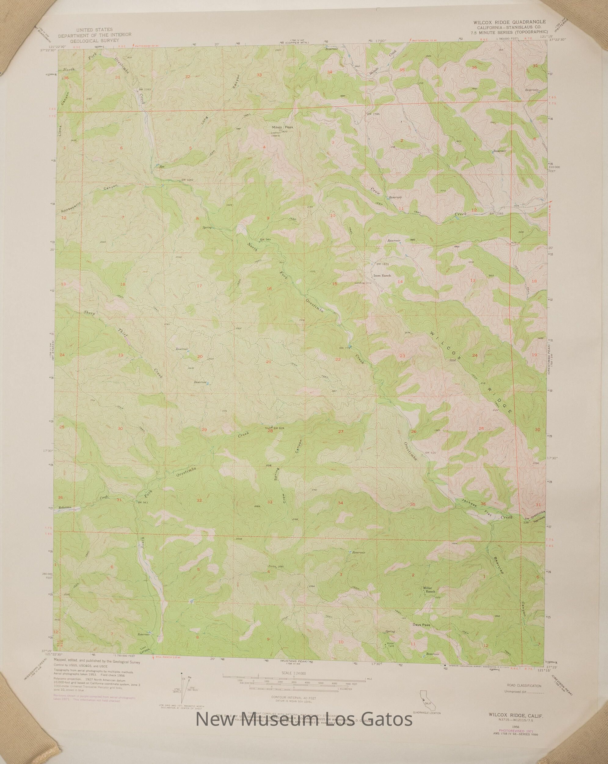 Two identical copies of a topographic, color map of the Wilcox Ridge quadrangle in Stanislaus County, California.Collection
