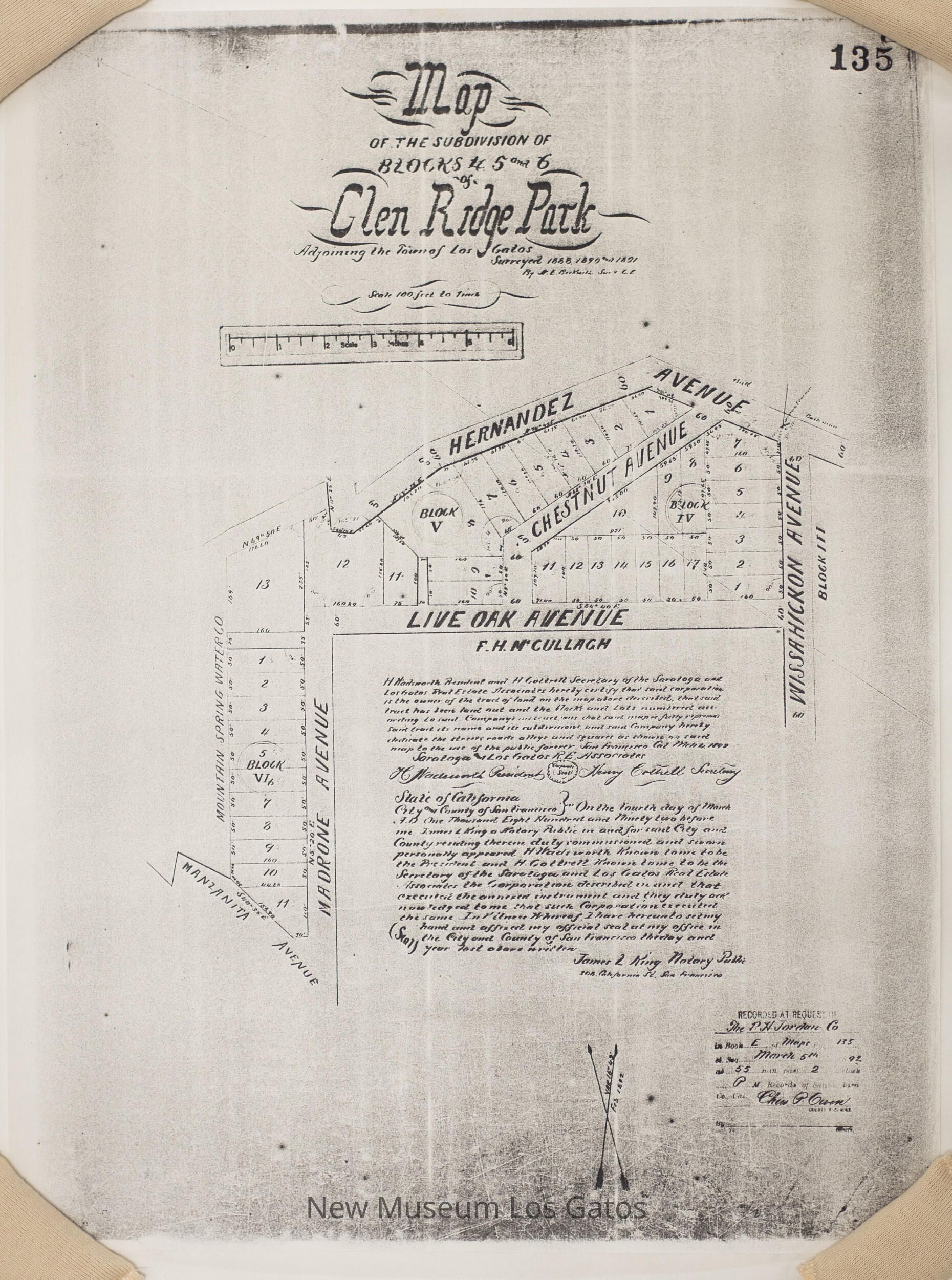 A copy of a black and white, hand-drawn map of blocks four, five, and six of the subdivision of the Glen Ridge Park adjoining the Town of Los Gatos.Collection