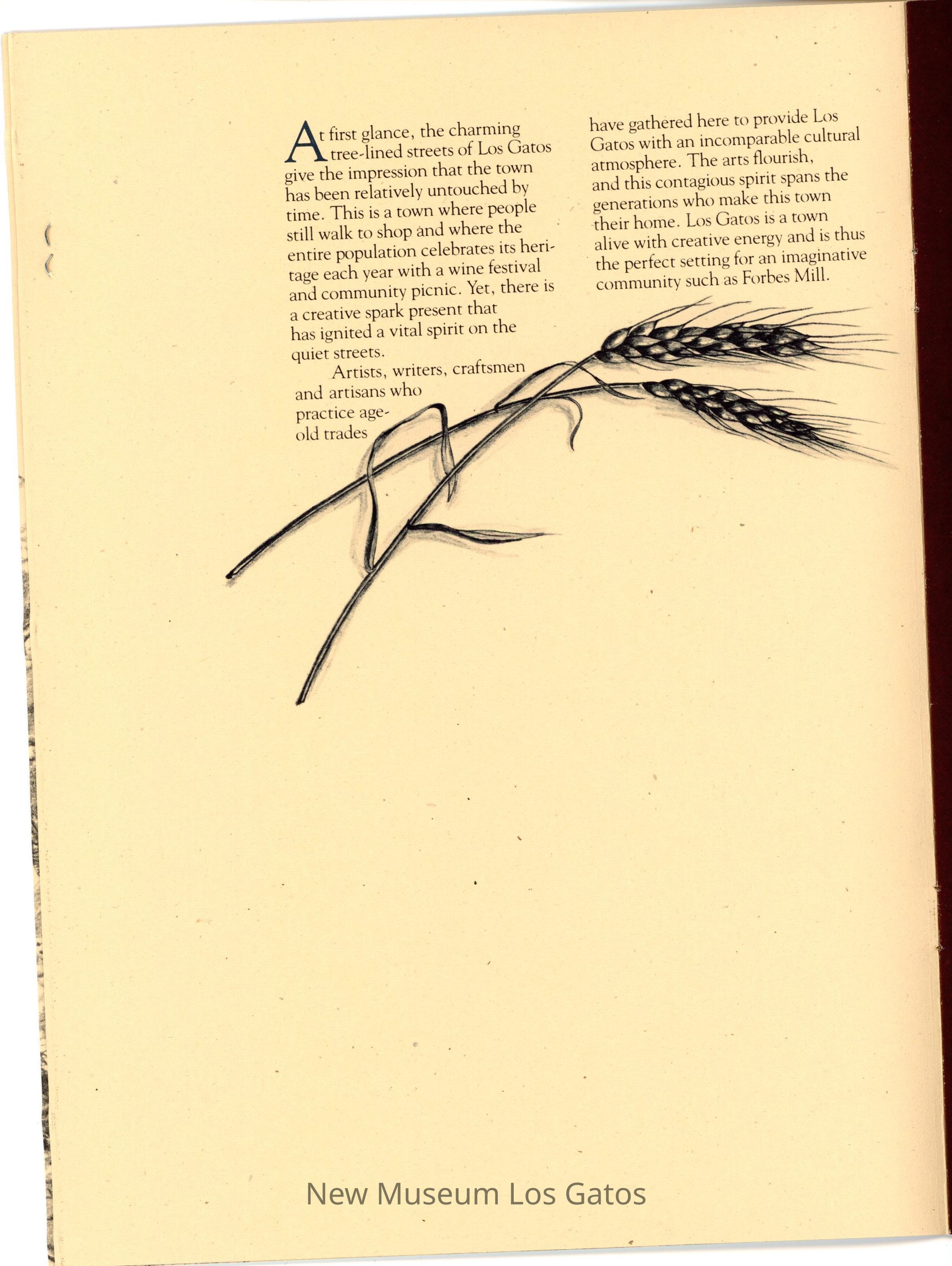 A sales brochure for the Forbes Mill condominium complex, featuring information about the history and appeal of the town, color images of places of interest, as well as a fold-out diagram of the available floor plan options.Collection