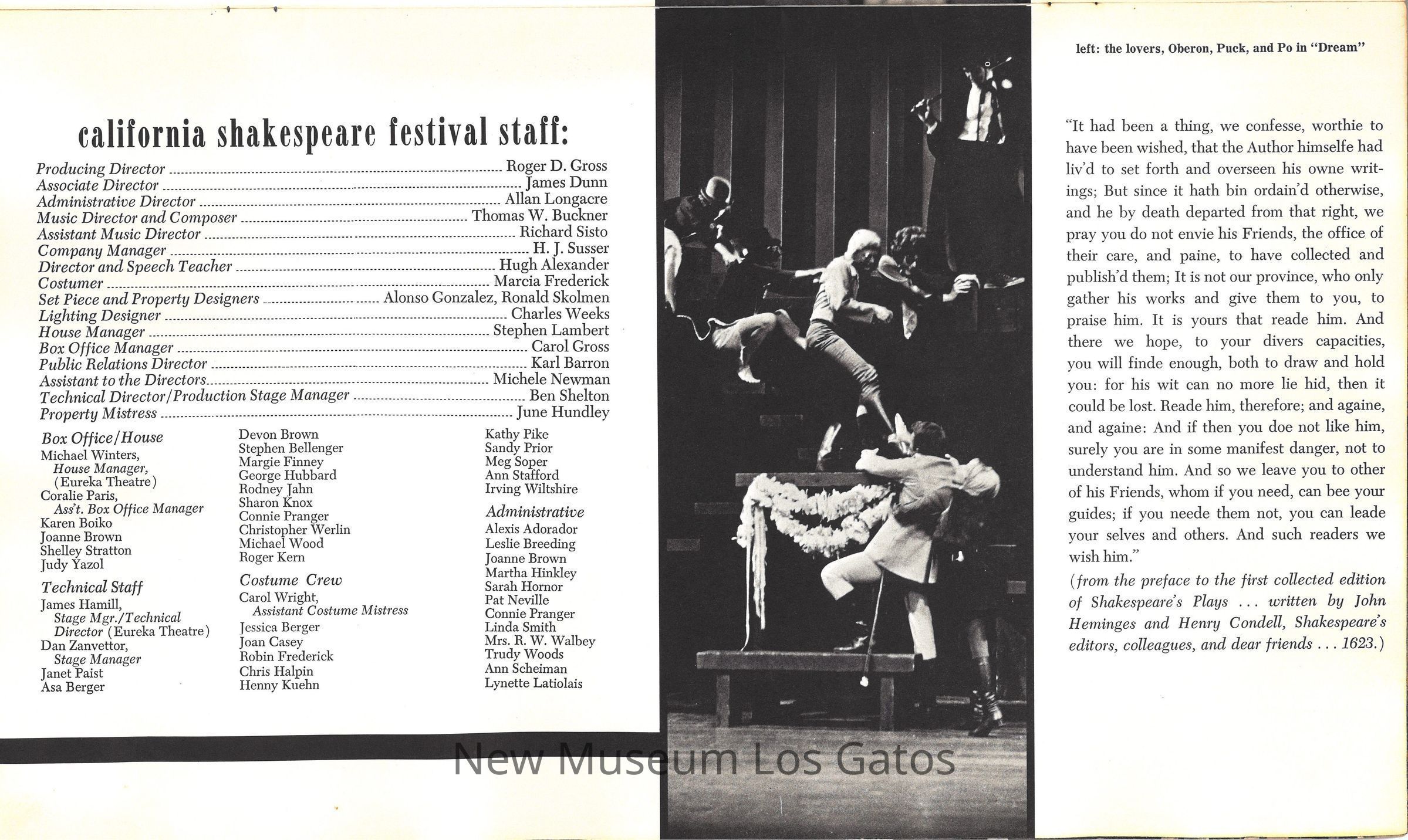 A souvenir program for the California Shakespeare Festival's 1969 season. The cover of the program features a black and white photograph of David Stiers as King Lear, with red text overlaid.
