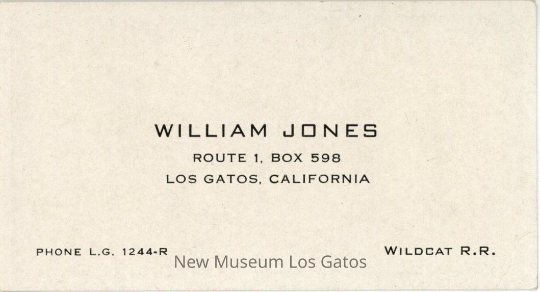 Two identical business cards for Billy Jones. One side features his name and address, while the other side features a black and white image of the Wildcat Railroad steam engine.