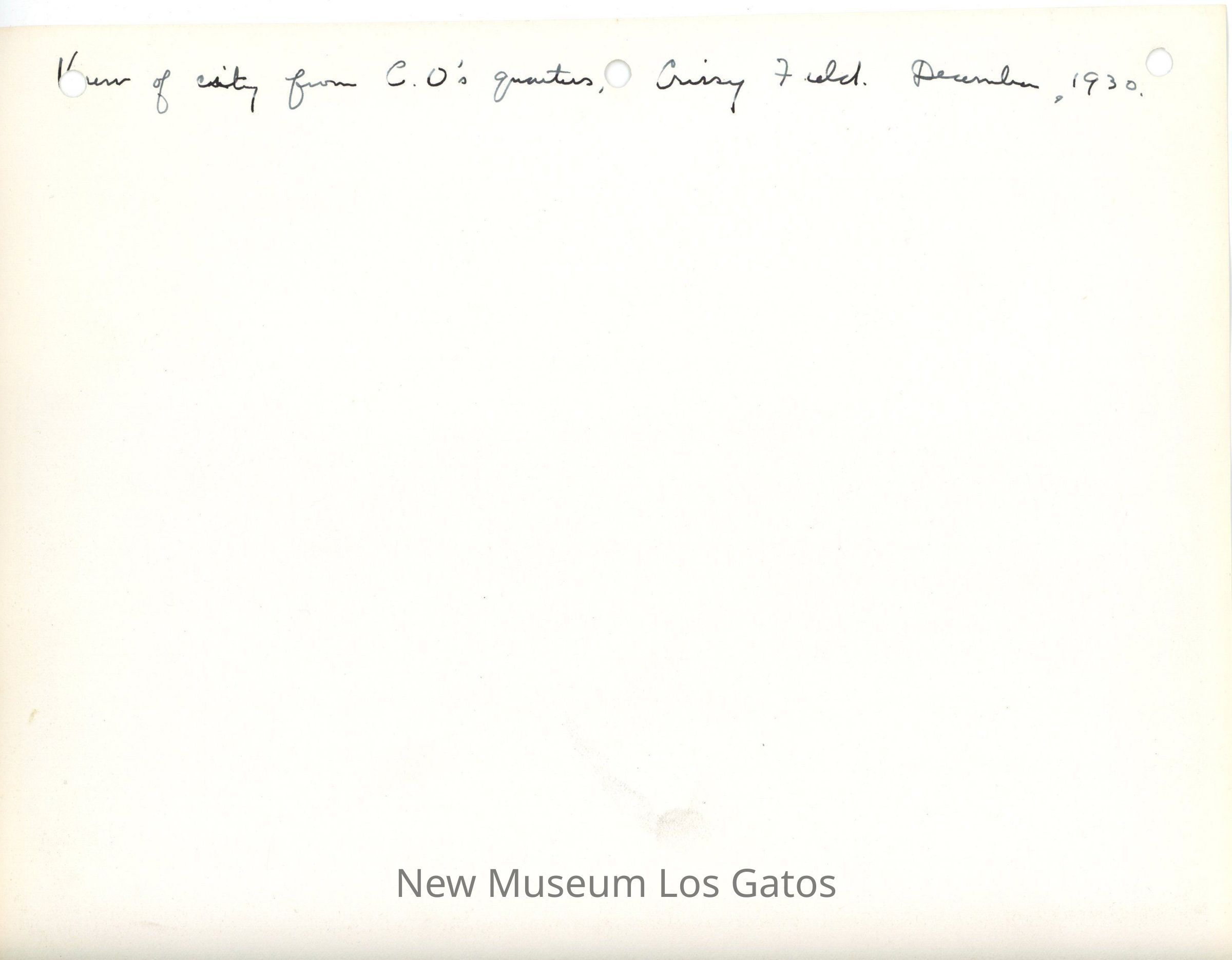 View of city from C.O.'s quarters, Crissy Field, December 1930Language