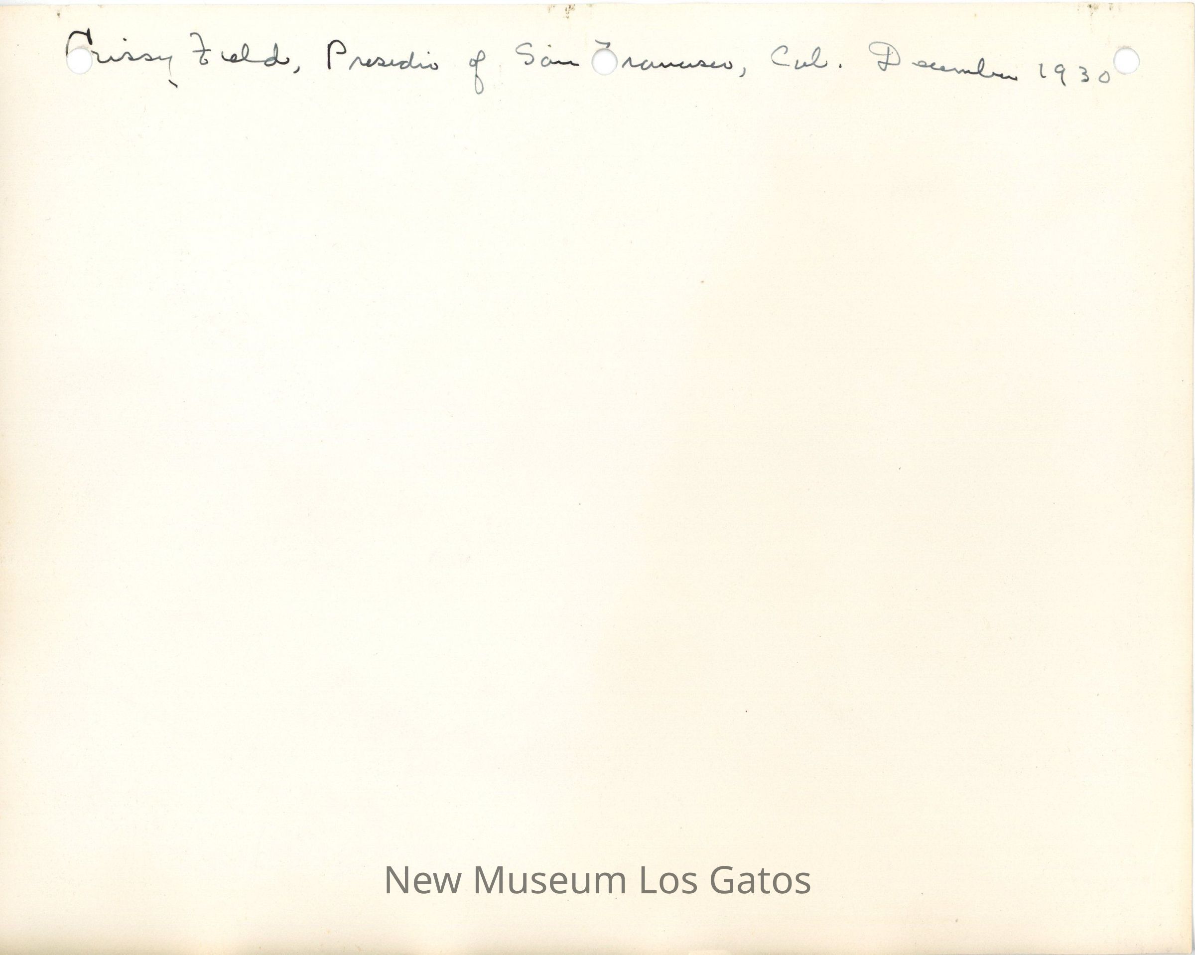 Crissy Field, Presidio of San Francisco, Cal. December 1930Language