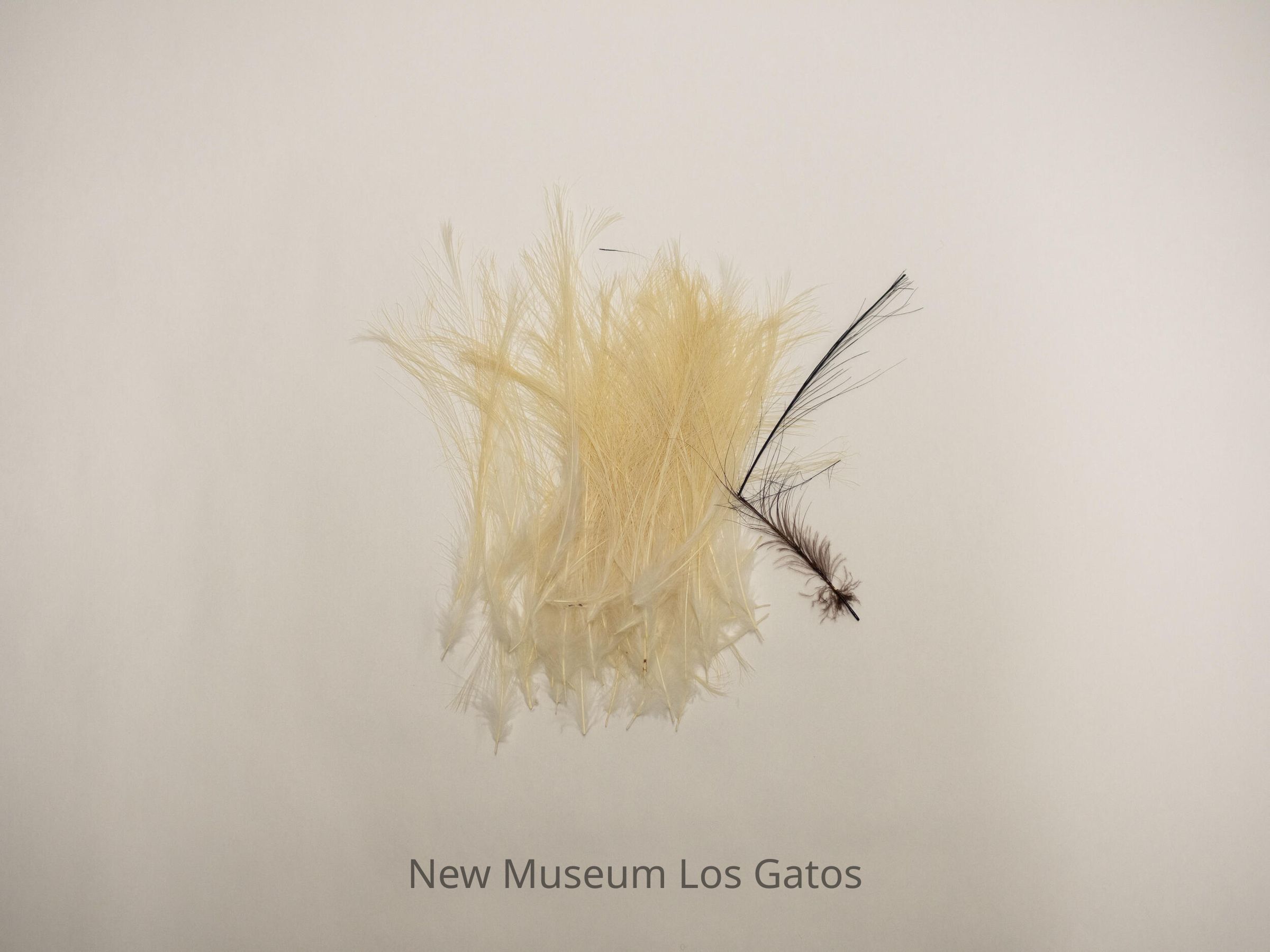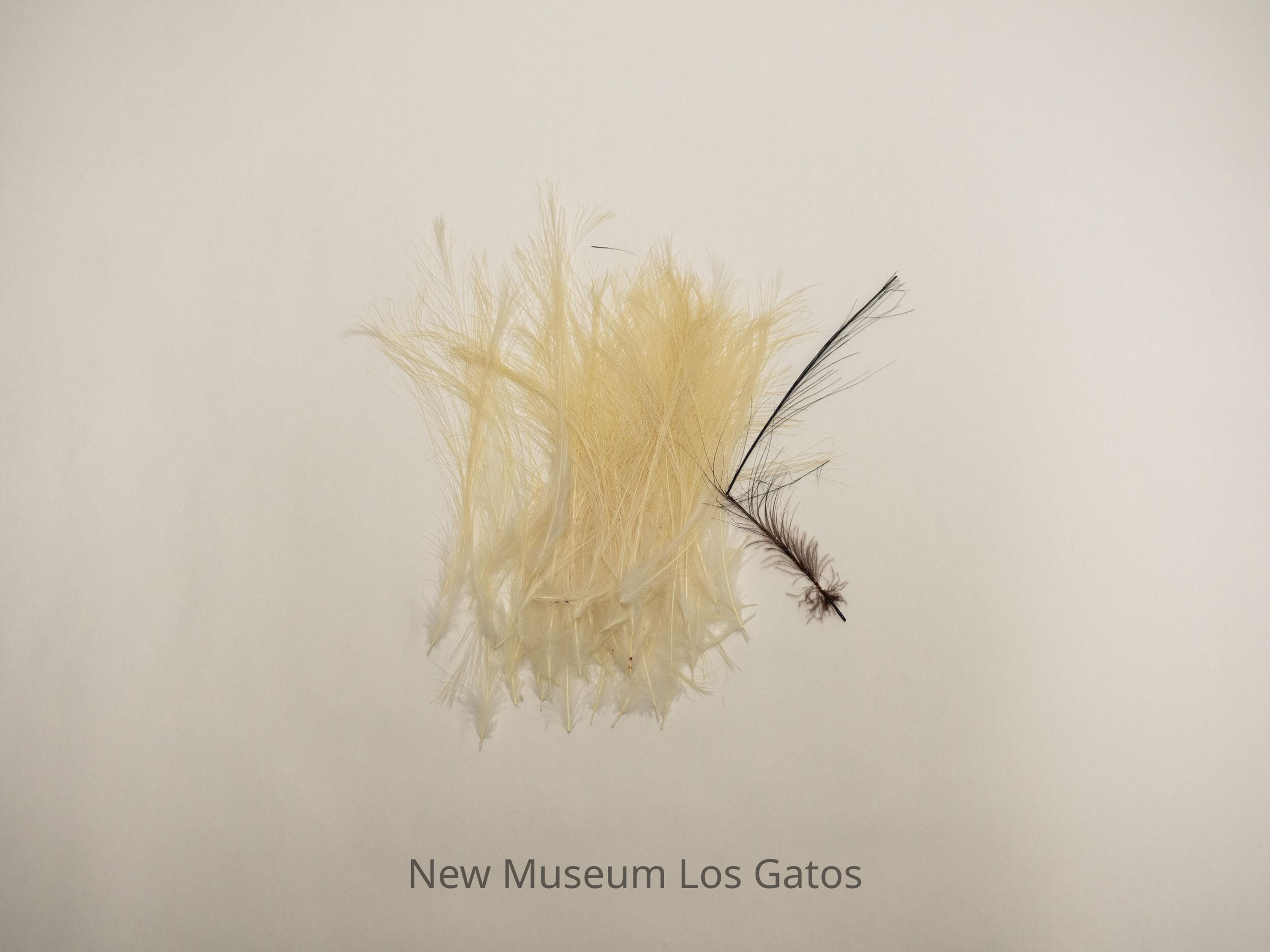 Seventy two (72) white and one (1) brown bird feathers.
