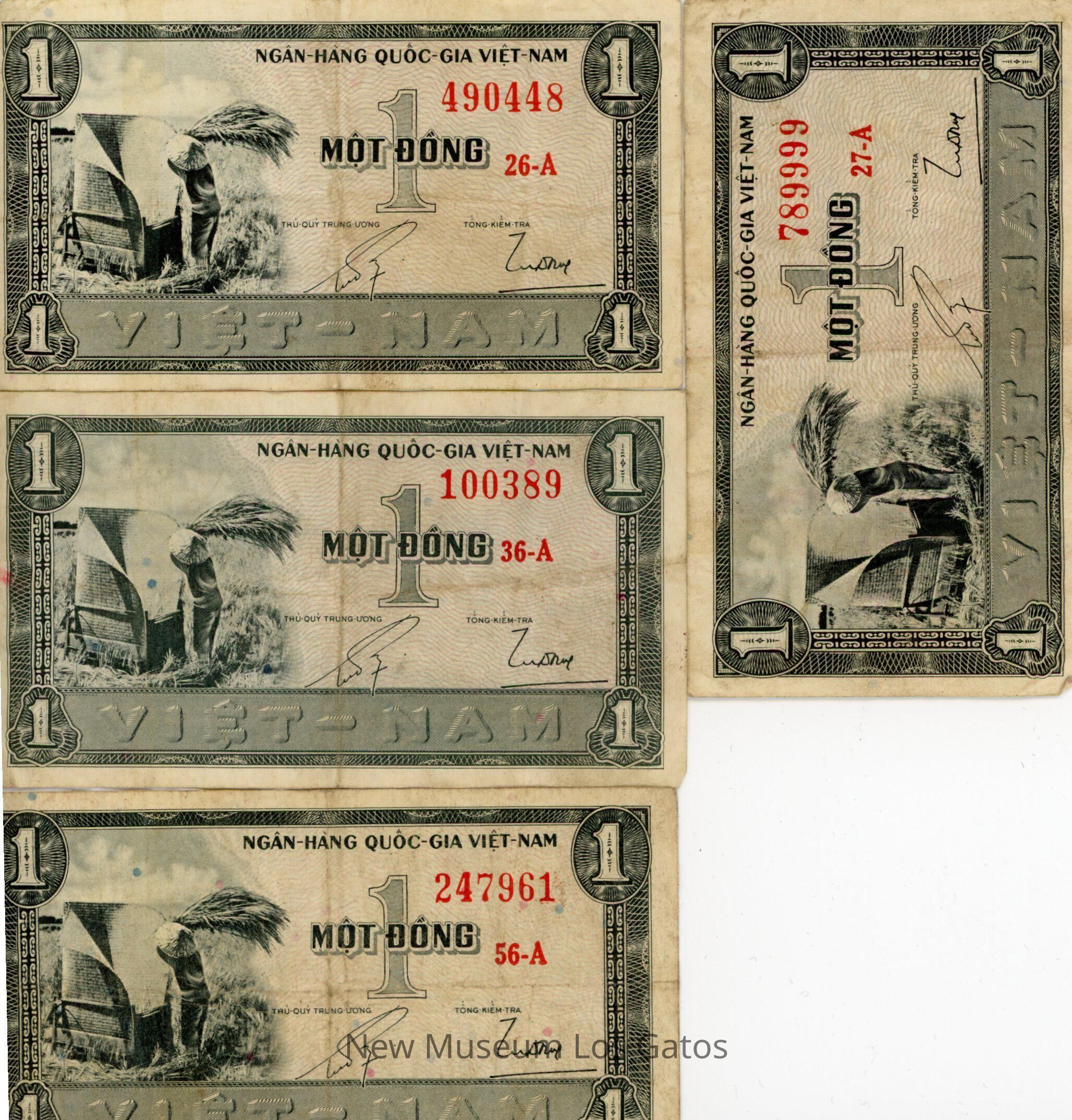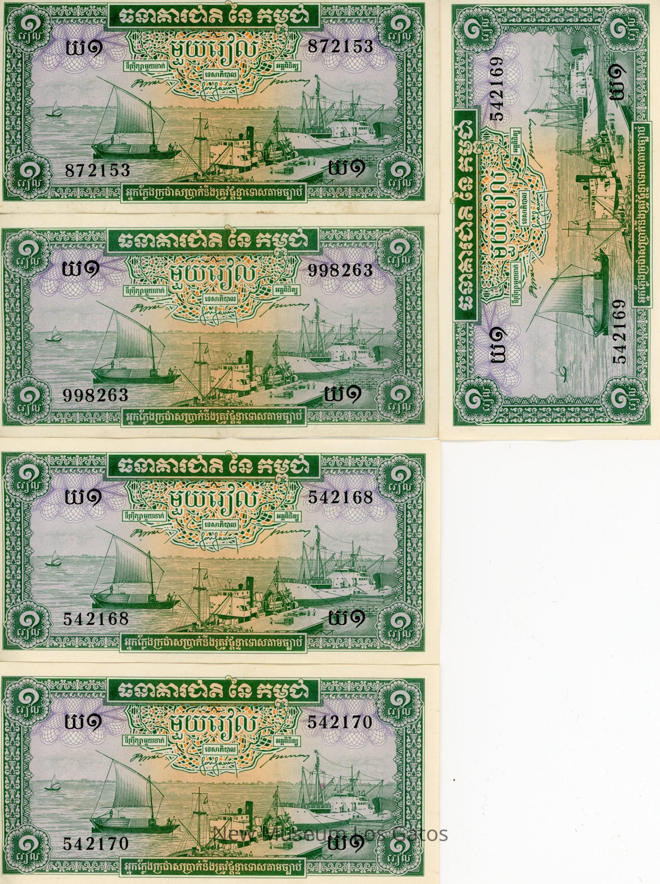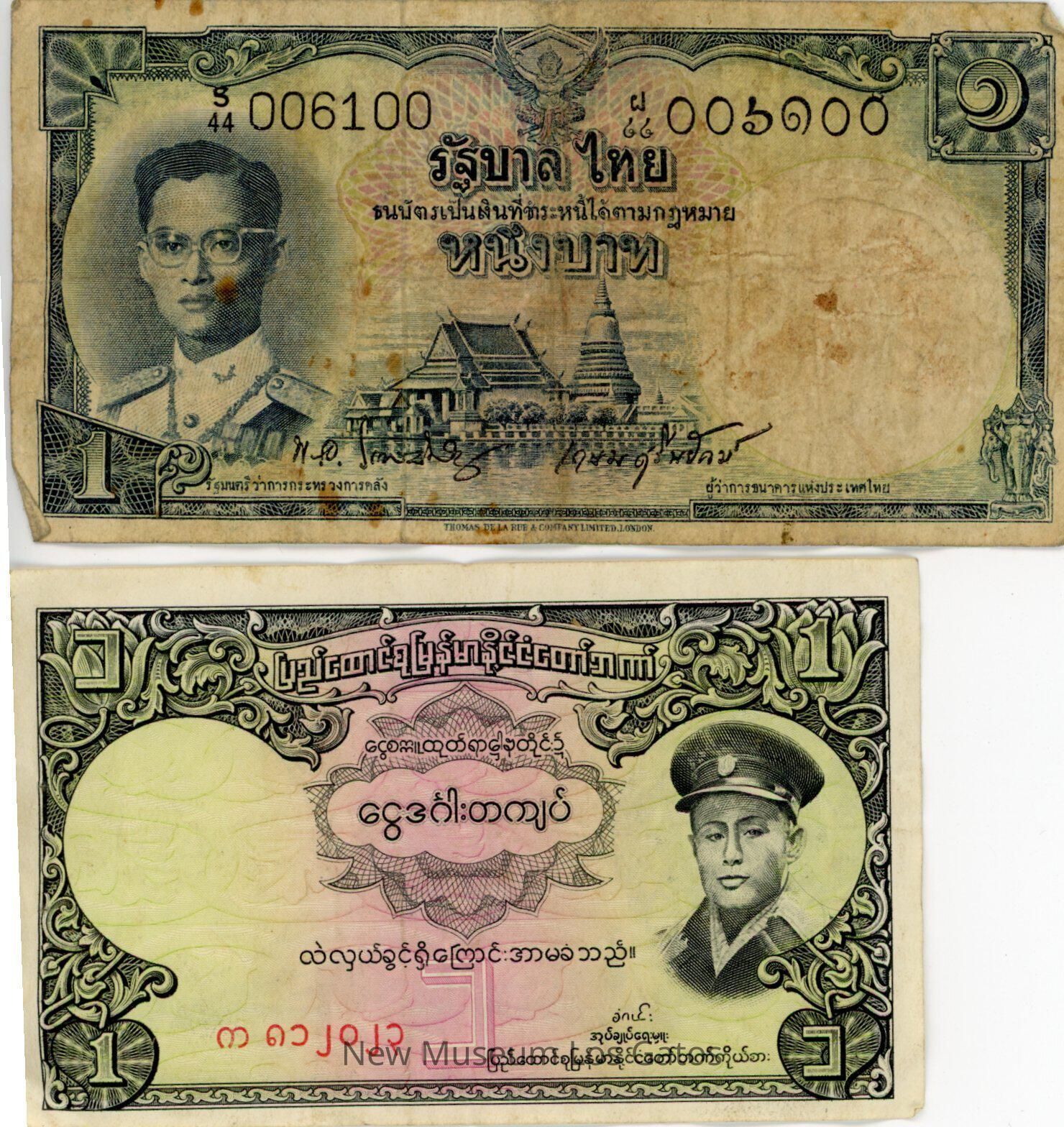 Nineteen individual bills in a variety of denominations, from a variety of foreign countries, including Burma, India, Cambodia, Hong Kong, Malaya, and Vietnam.Collection