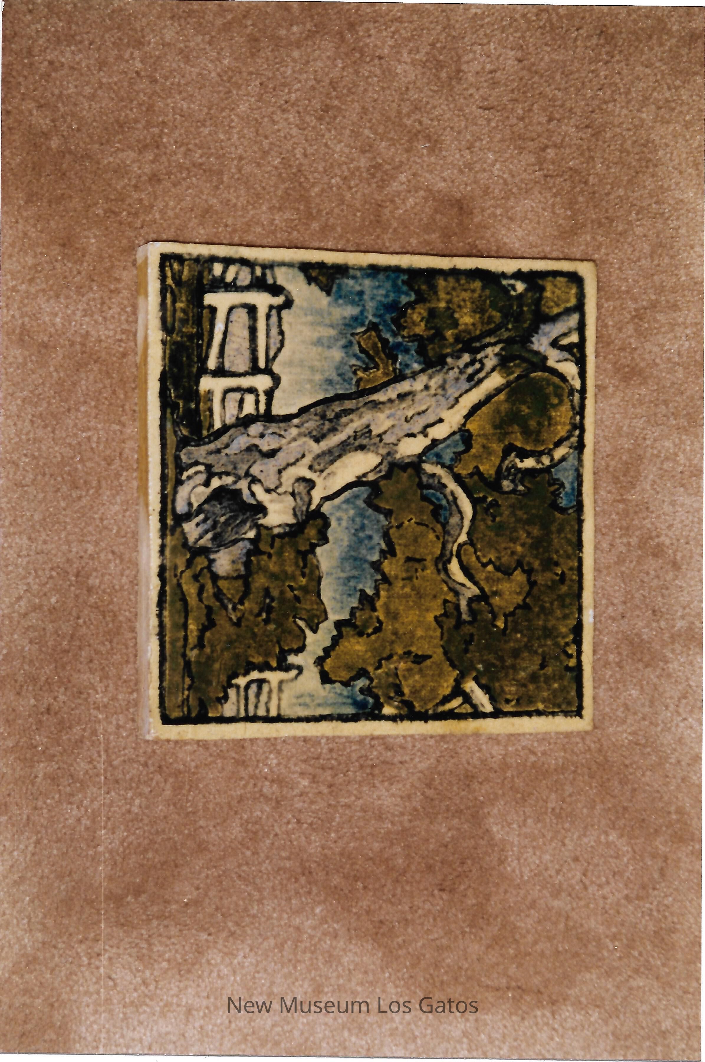 (R122-31A) Cathedral Oaks tile - marked and dated 1912 / This is owned by Mrs. Marie Martin, daughter of Albert Solem and Emma Ness Solem who met each other at Cathedral Oaks in 1912 when Albert taught there and Emma was a student. Albert became a famous tilemaker.