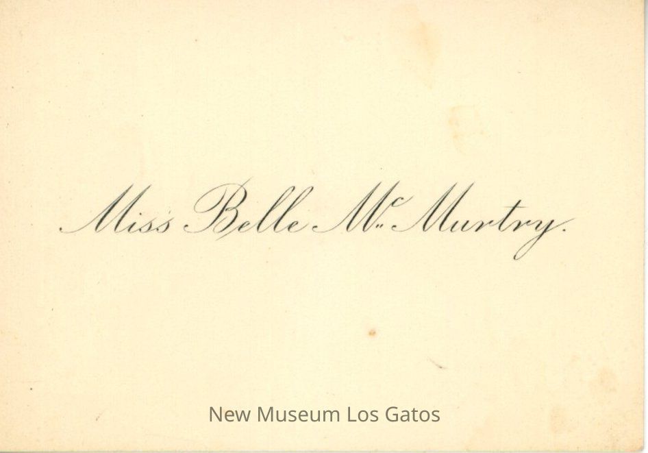 One small, square piece of cardstock-like paper with the words "Miss Belle McMurtry" printed in stylized cursive lettering on one side.
