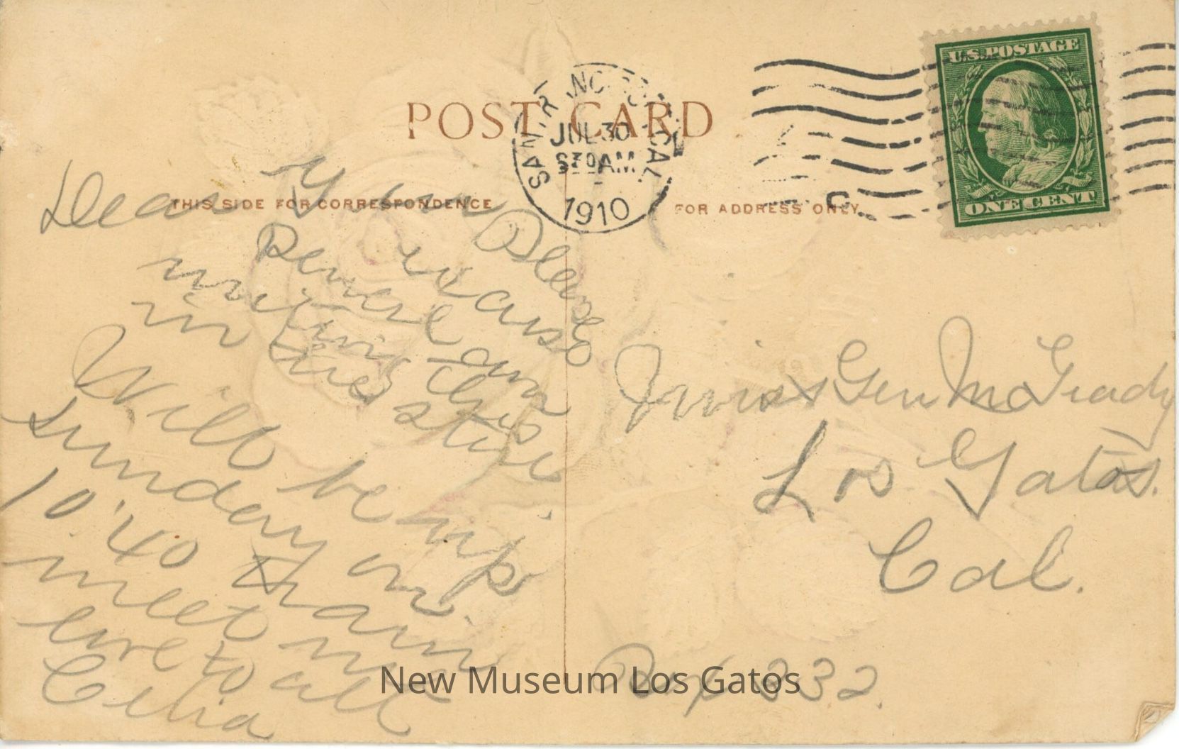 {inscription is difficult to read due to embossing lines of postcard}Language