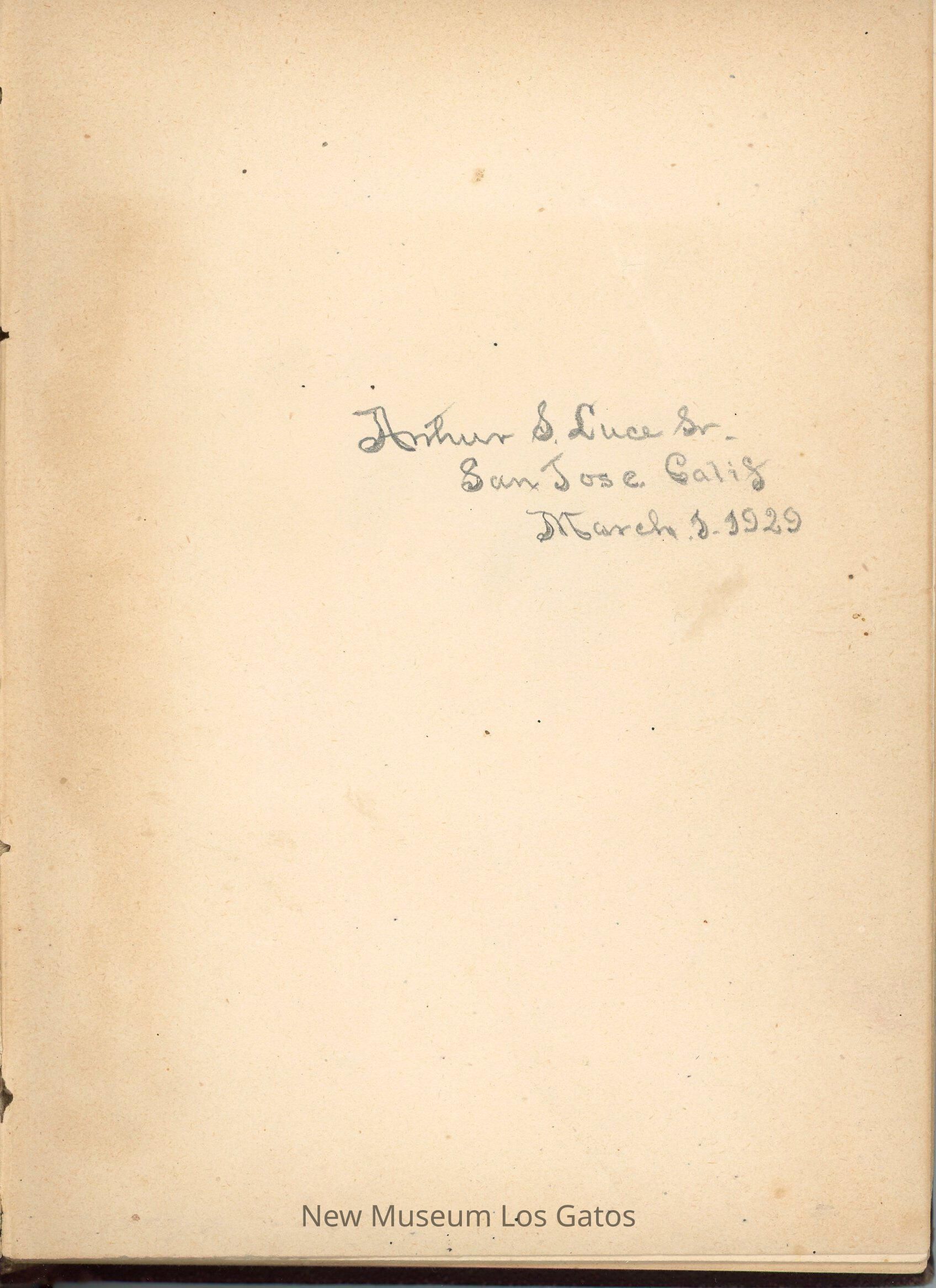 Arthur S. Luce Sr. / San Jose, Calif. / March 1, 1929Language