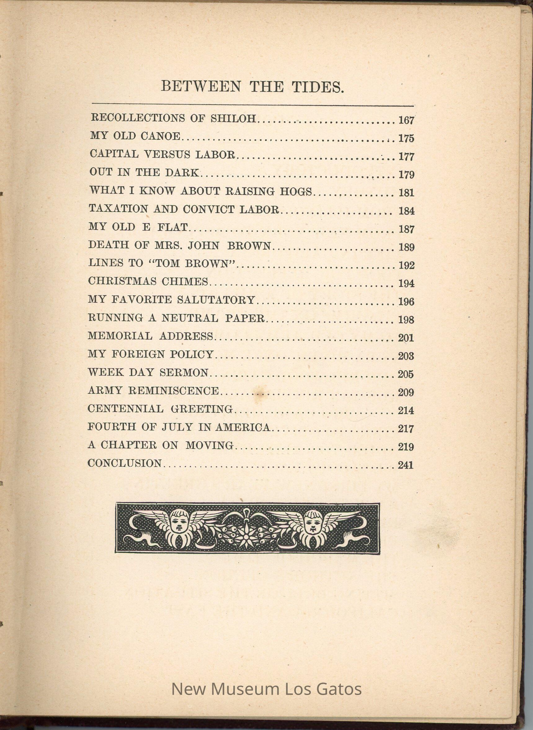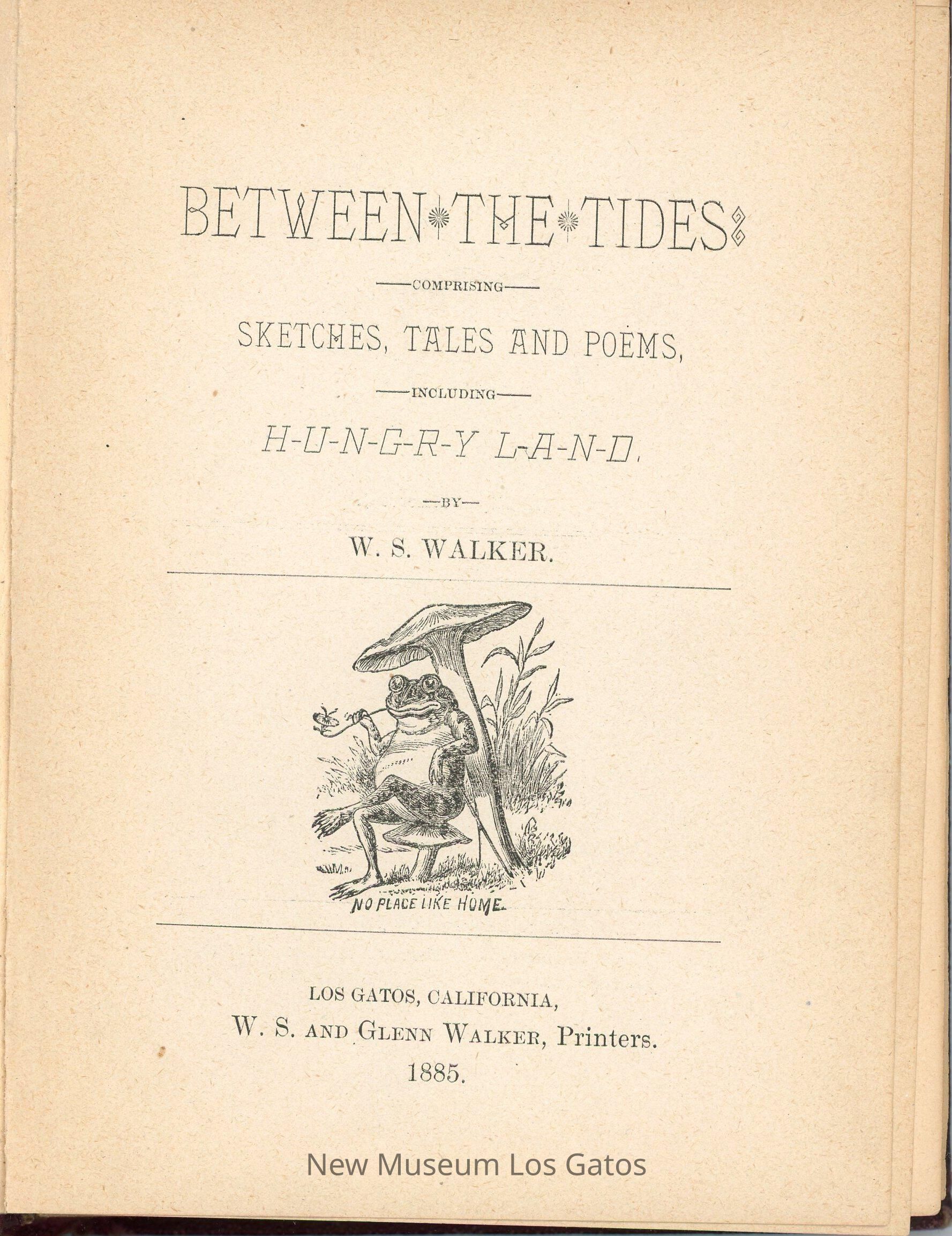 A dark brown/purple cloth-bound copy of Between the Tides, a collection of sketches, tales, and poems by W.S. Walker.Collection