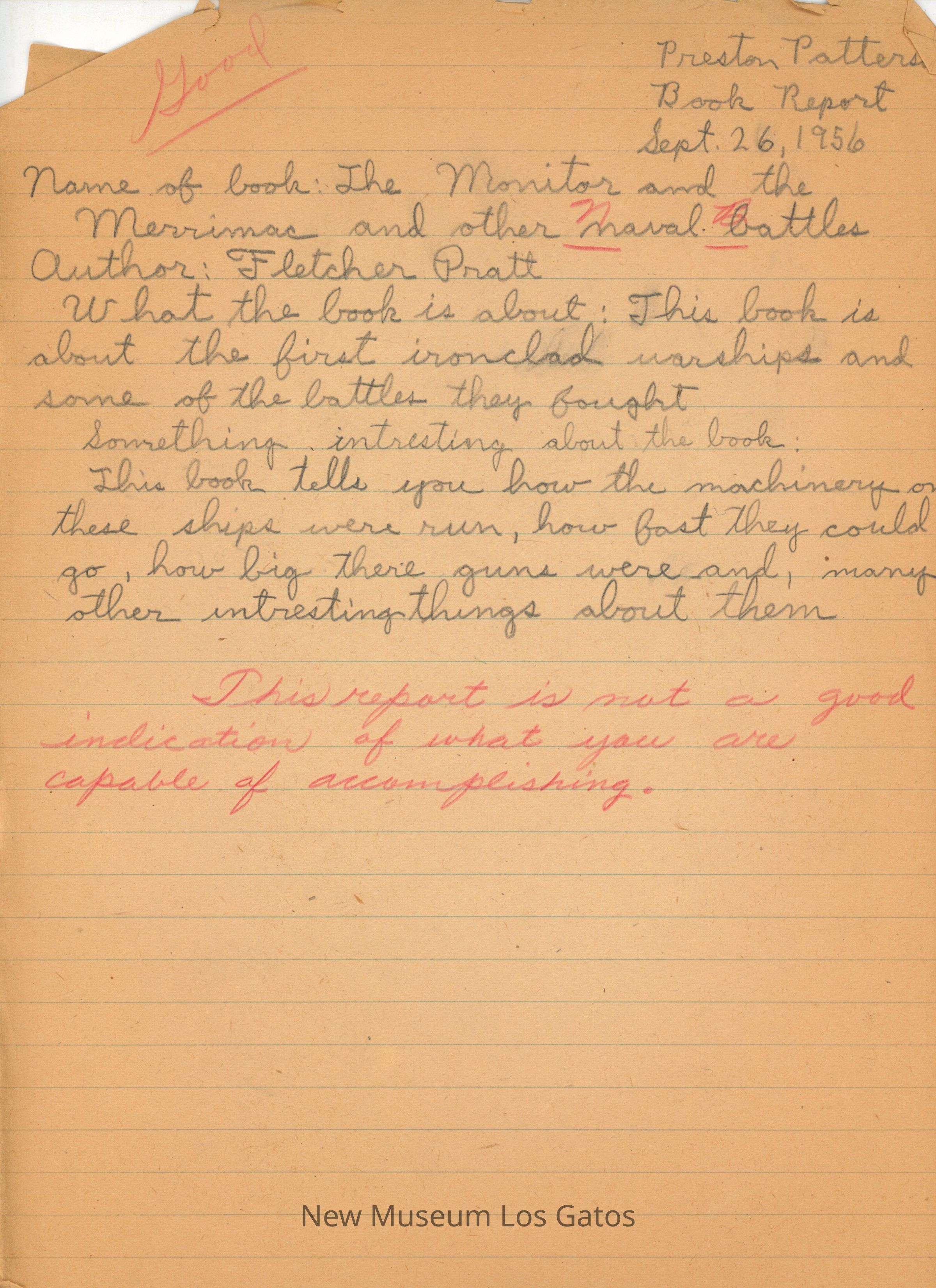 Student report on the book The Monitor and The Merrimac and Other Naval Battles.Creator