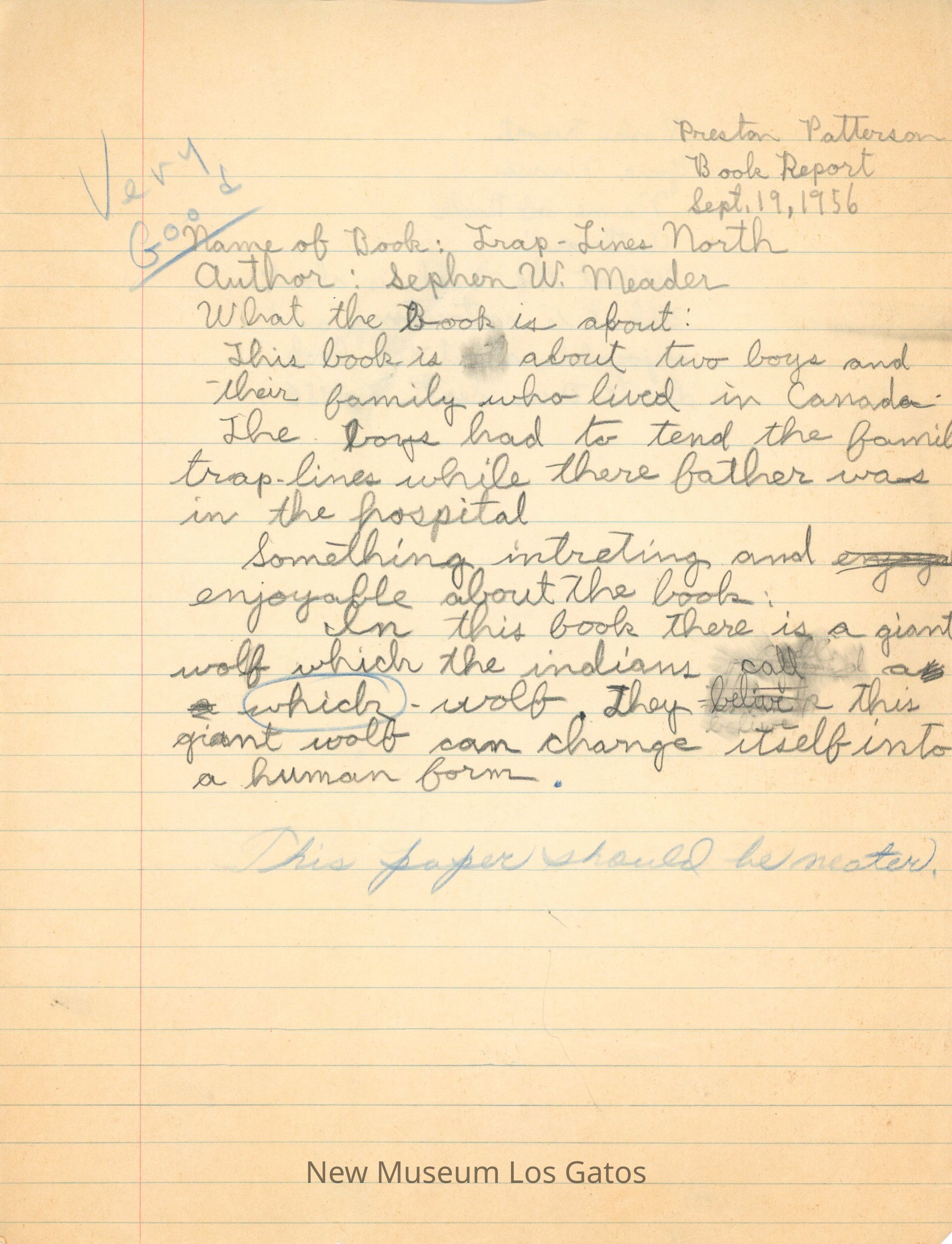Student report on the novel Trap Lines North by Stephen W. Meader.Creator