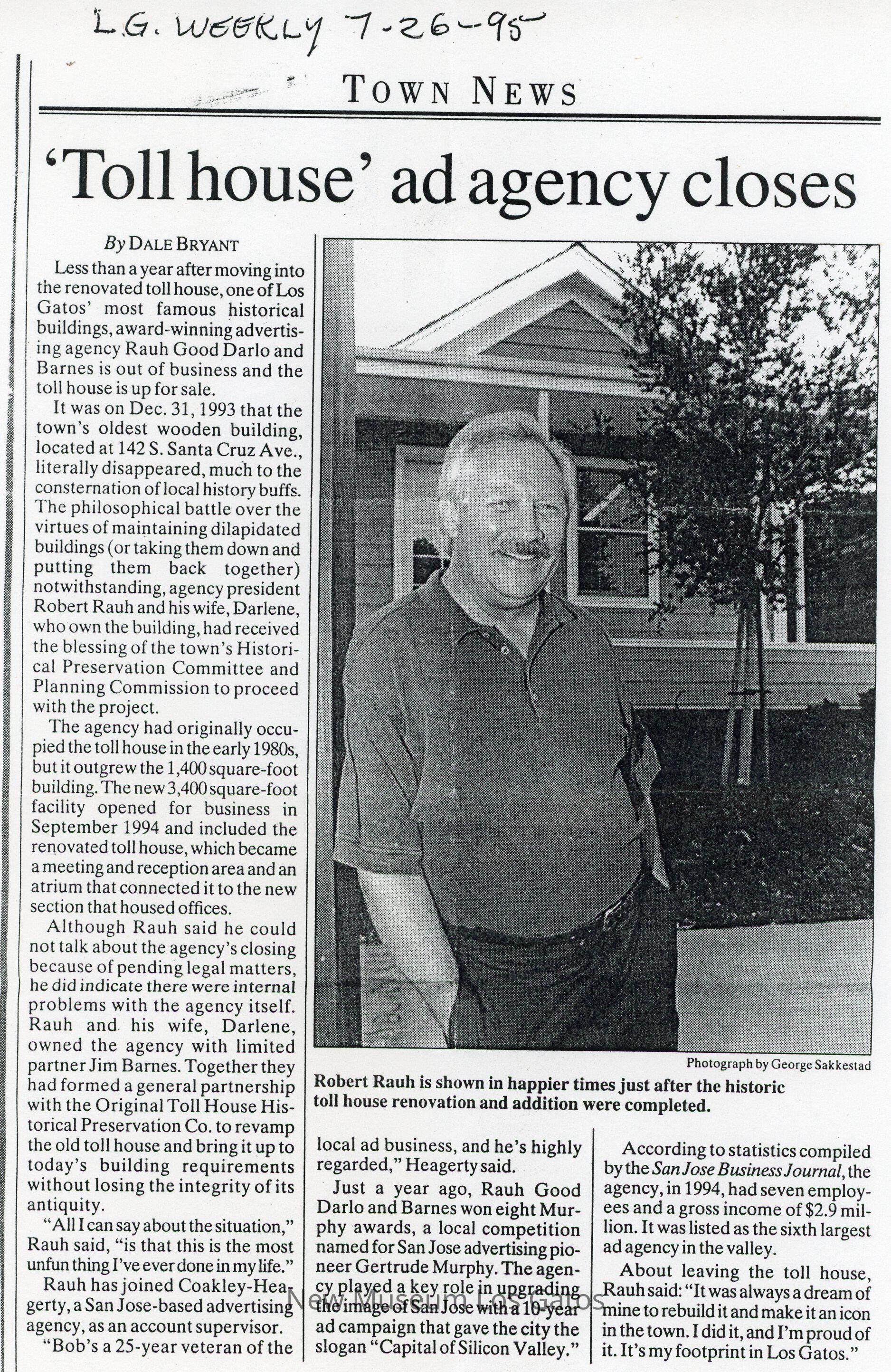 A scan of a newspaper article about the Toll House was found with the bottle, but does not appear to mention the outhouse, or the donors/owners Kenneth and Ramona. A scan of this scan is attached to this record.