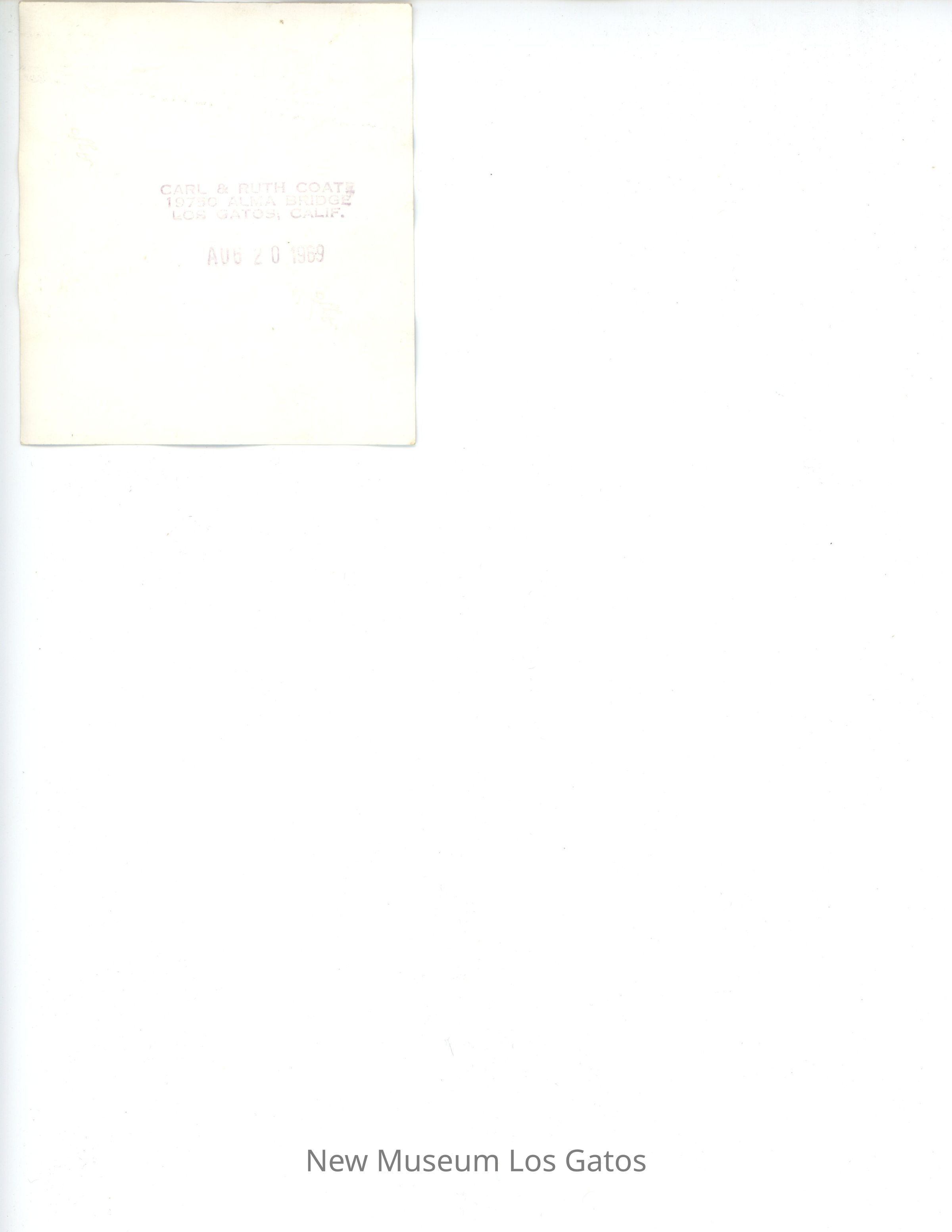 CARL & RUTH COATE 19750 ALMA BRIDGE LOS GATOS, CALIF. AUG 20 1969