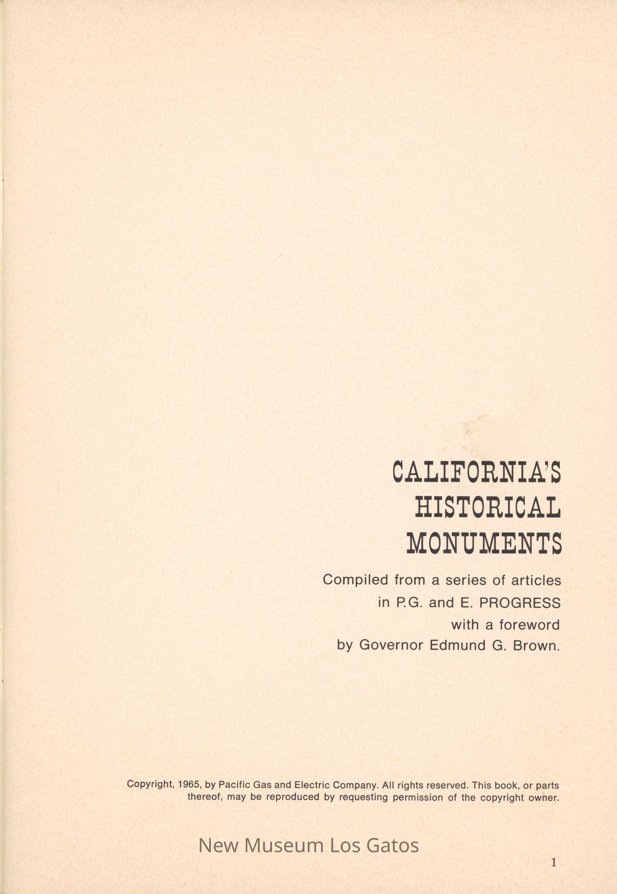 A compiled series of articles, history, and photographs of California landmarks and monuments, published by PG&E.Collection