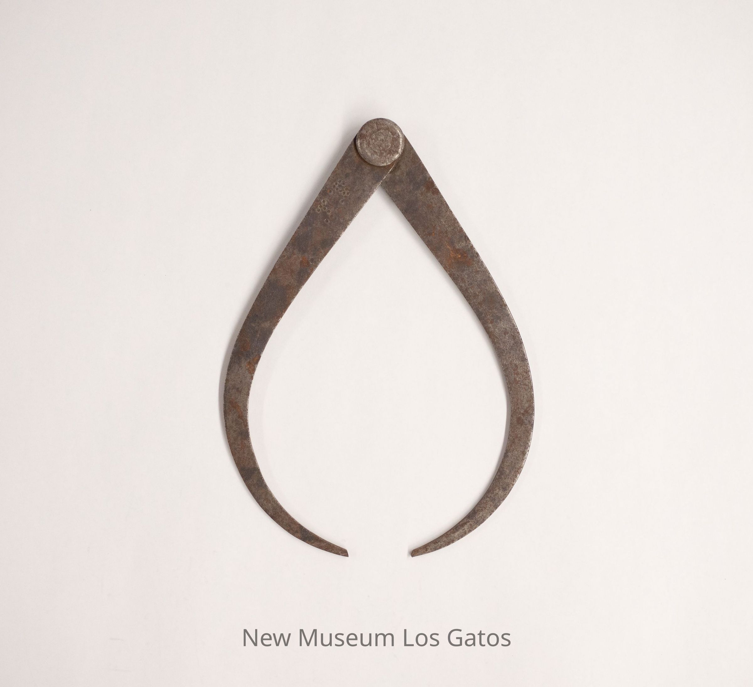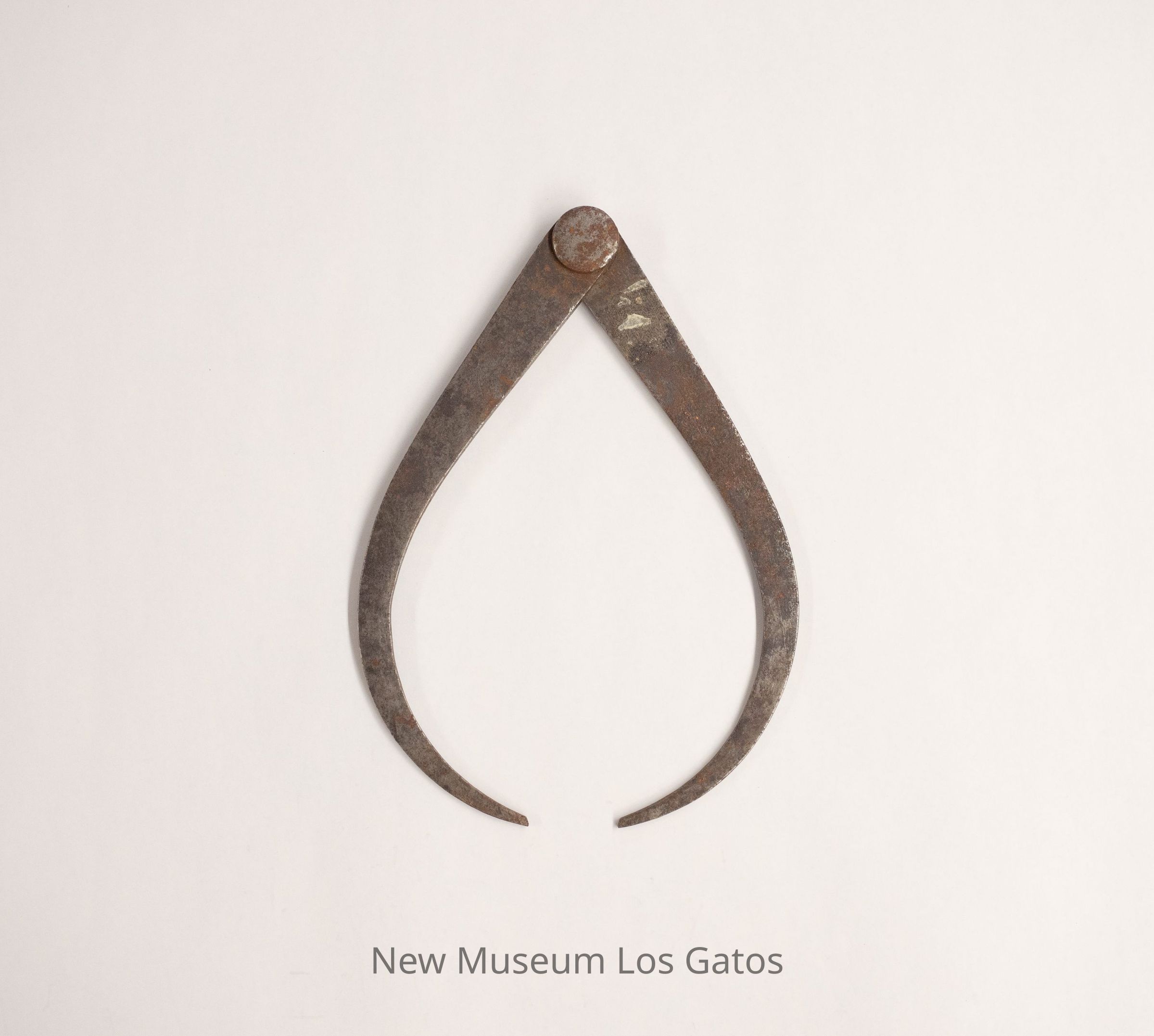 A pair of squared, curved metal rods that taper towards a point at the bottom. The rods are held together at the top by a joint that opens and closes the rods.Collection