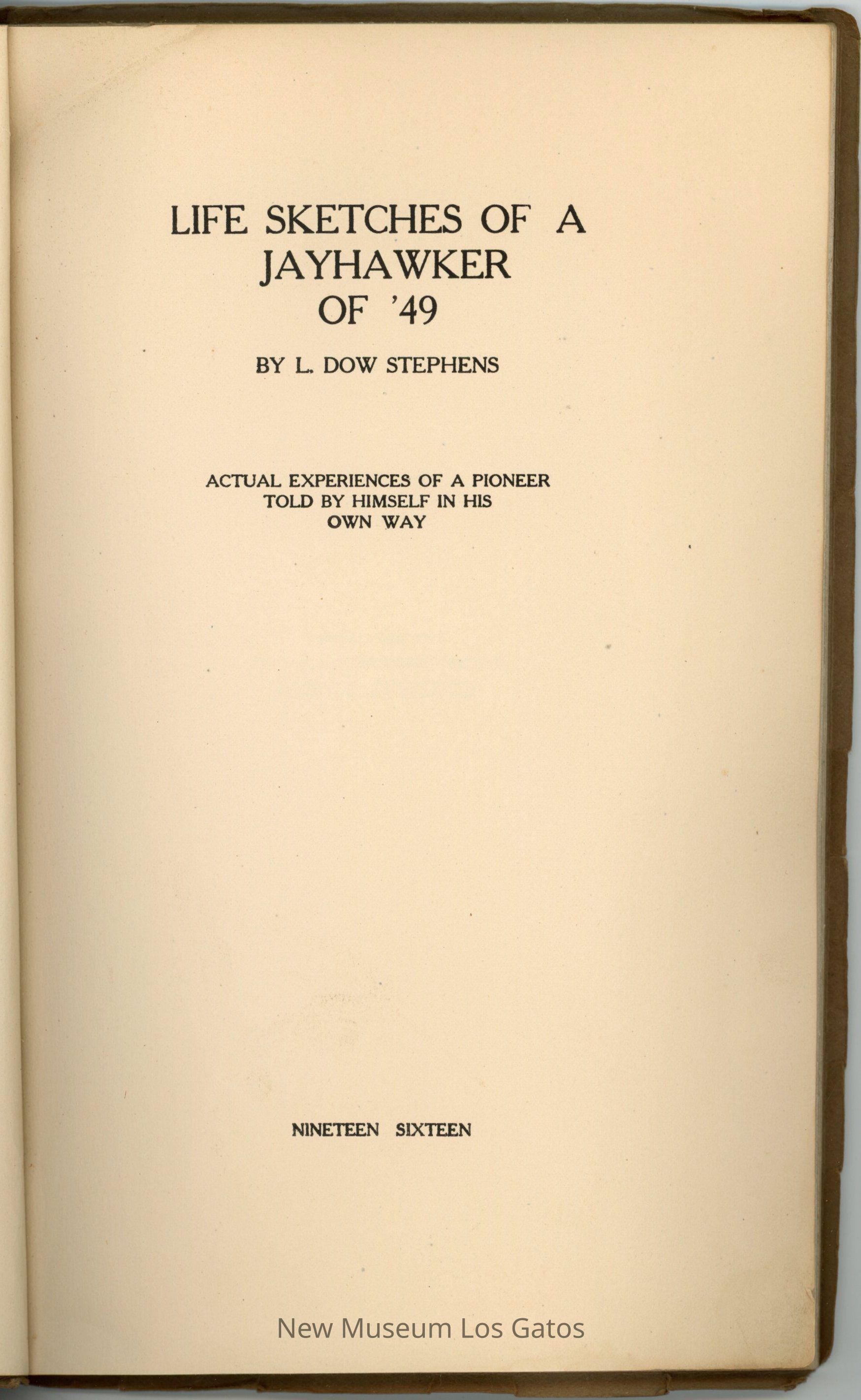 Life Sketches of a Jayhawker of '49Entry/Object ID