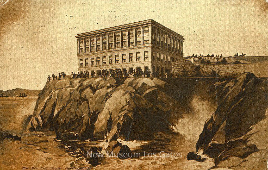 A postcard with an illustration of the Cliff House in San Francisco. The postcard is fully brown and not in color.Subject Place