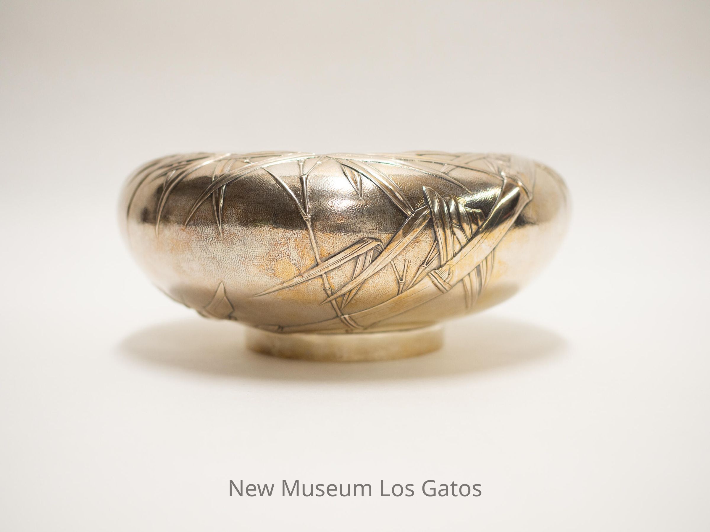 Commemorative silver bowl, with bamboo pattern along the exterior of the bowl. There is an inscription inside the bowl, details below.