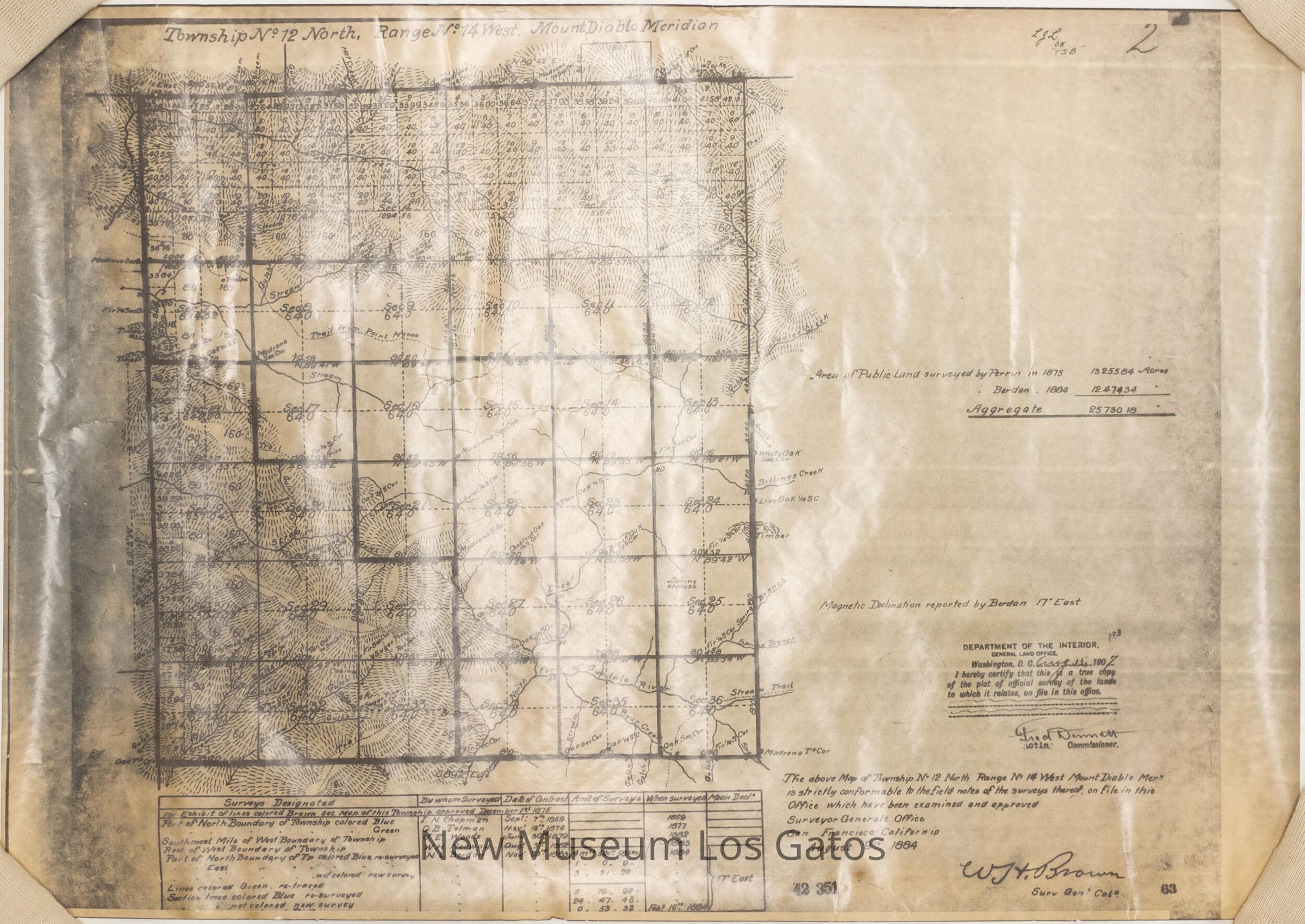 A copy of a black and white, hand-drawn map and land survey near Mount Diablo.Collection