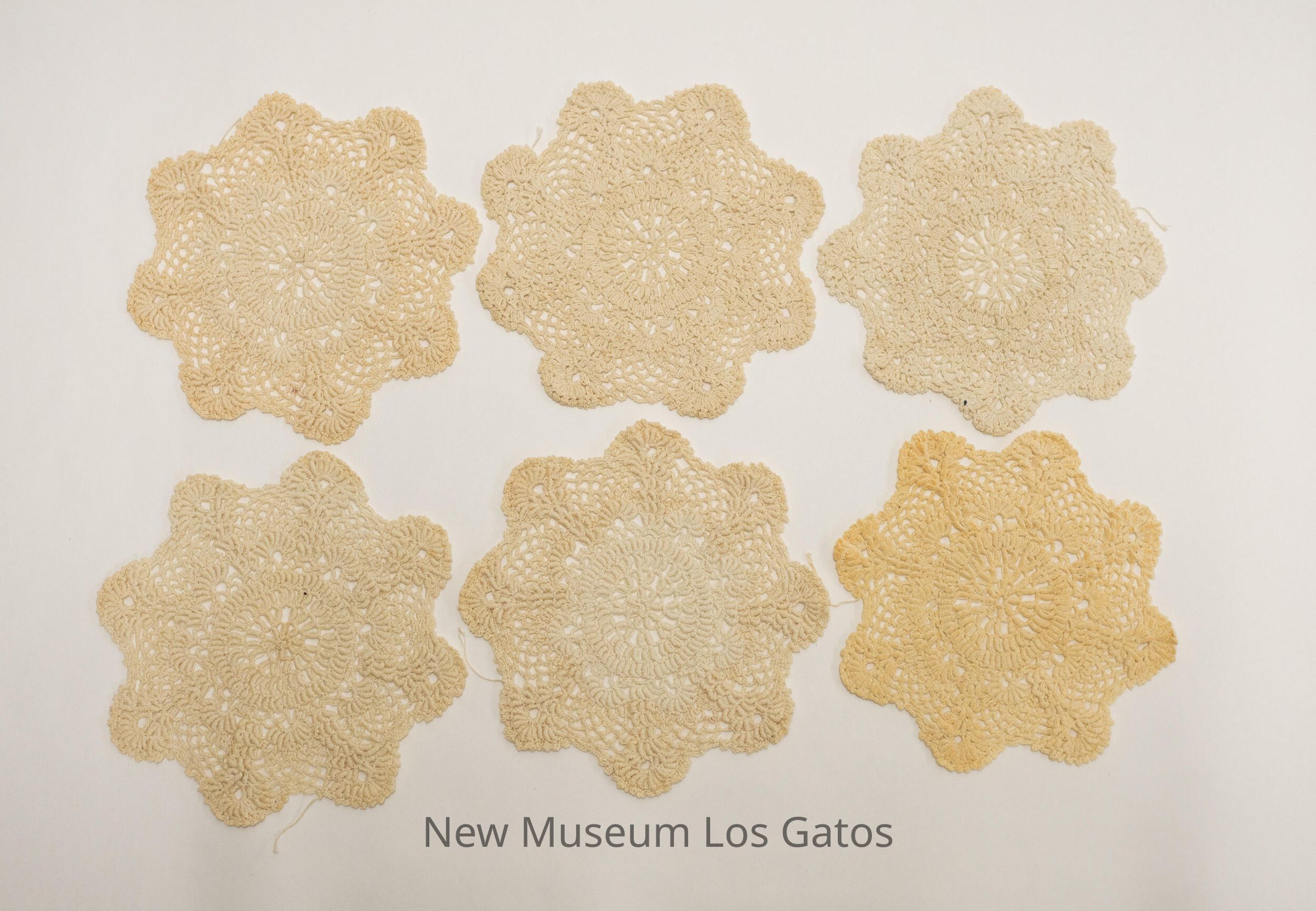 Six crocheted eight-sided "star" shaped doilies.Collection
