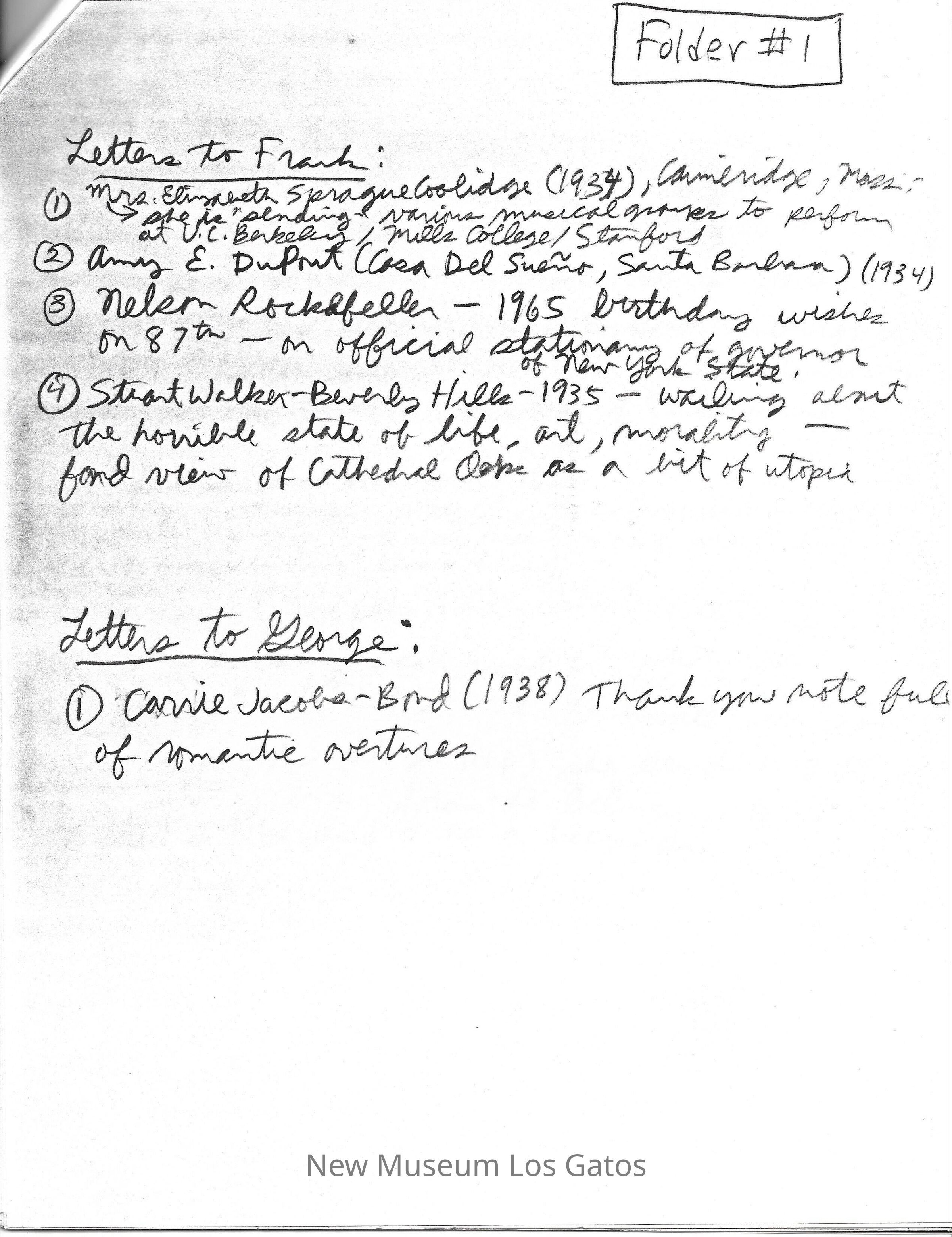 Eleven pages of handwritten notes summarizing the contents of the "Frank Ingerson Papers, 1927-1965" in the Bancroft Library at UC Berkeley.