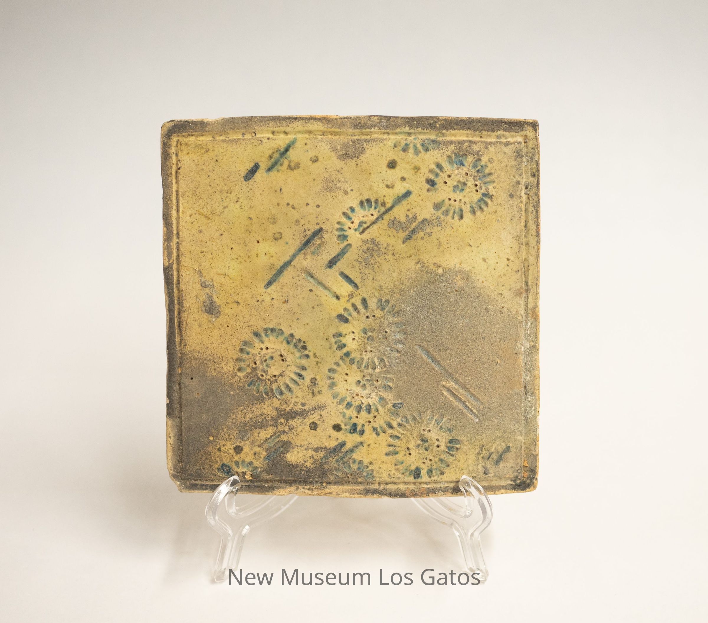 Tile was made by an unknown student of the Cathedral Oaks school, under the direction of Albert Solon, under the design influence of Frank Ingerson and Pedro Lemmos.