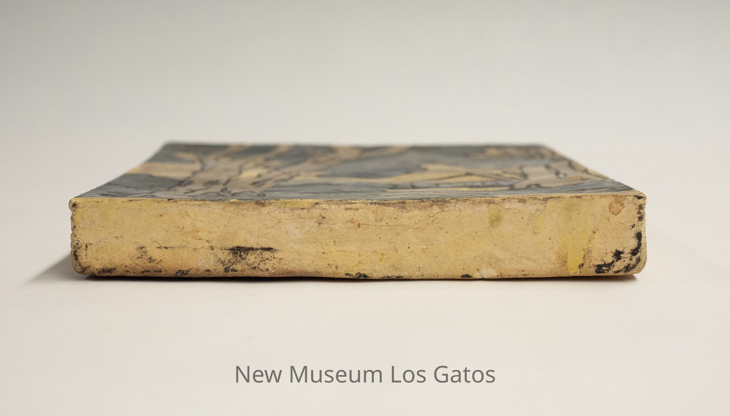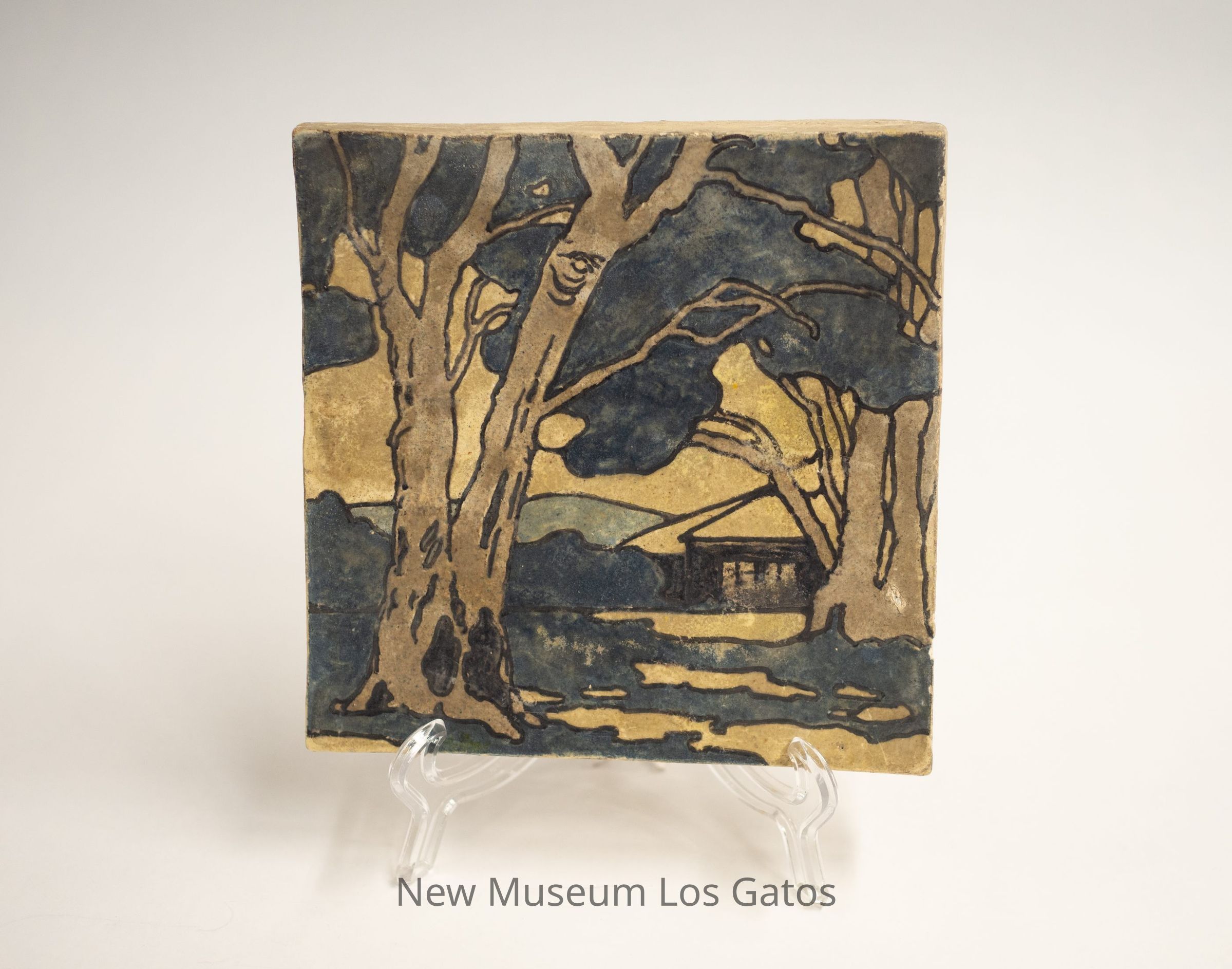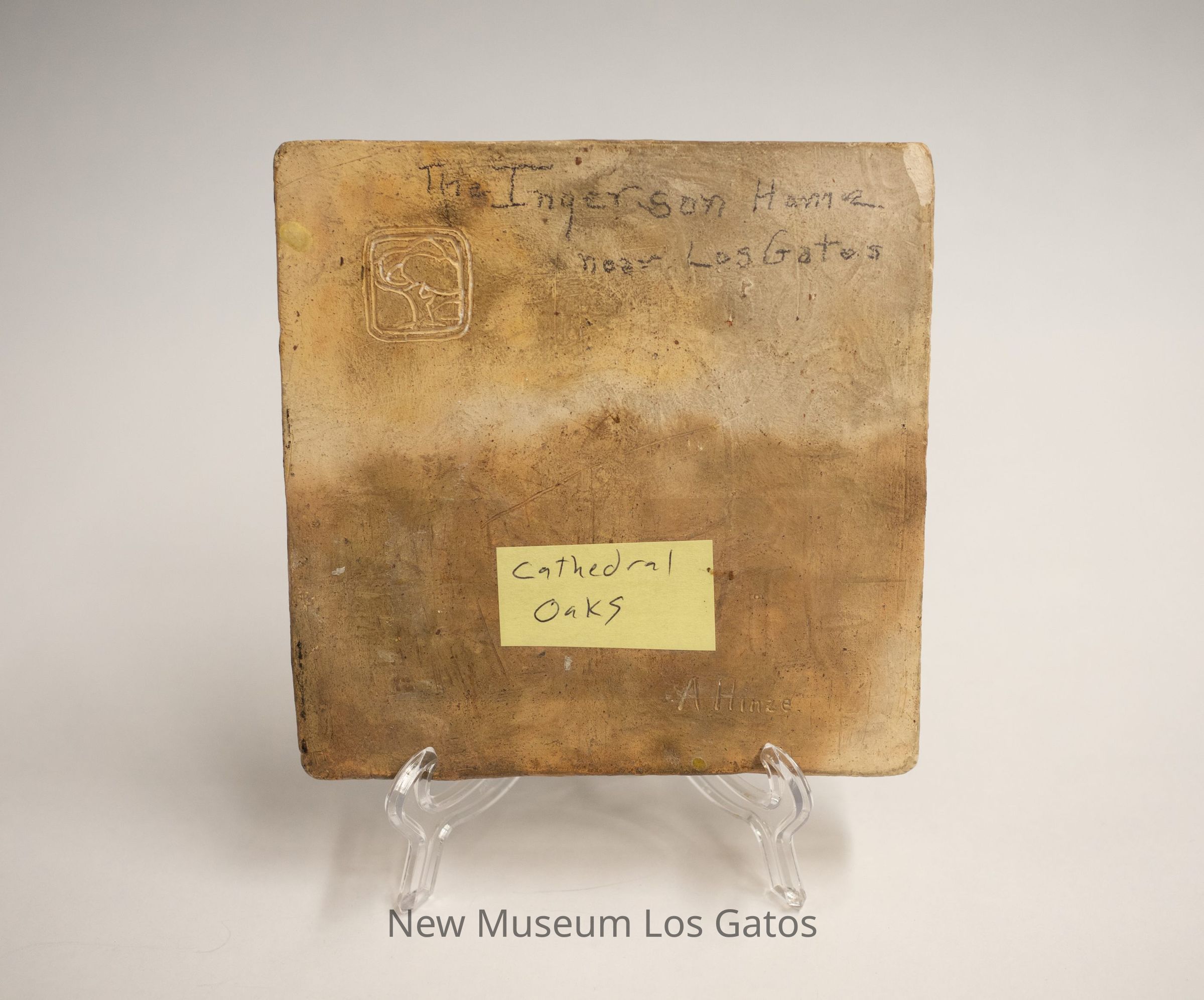 Tile was made by a partially-unknown student of the Cathedral Oaks school, under the direction of Albert Solon, under the design influence of Frank Ingerson and Pedro Lemmos.