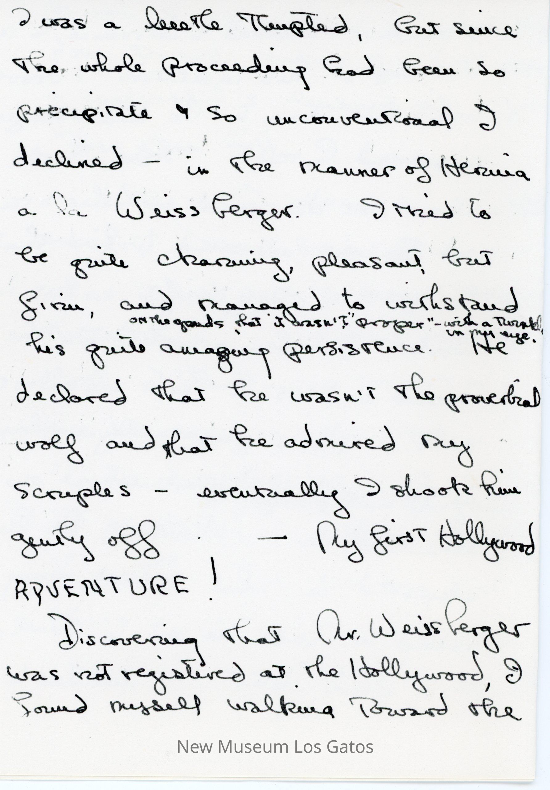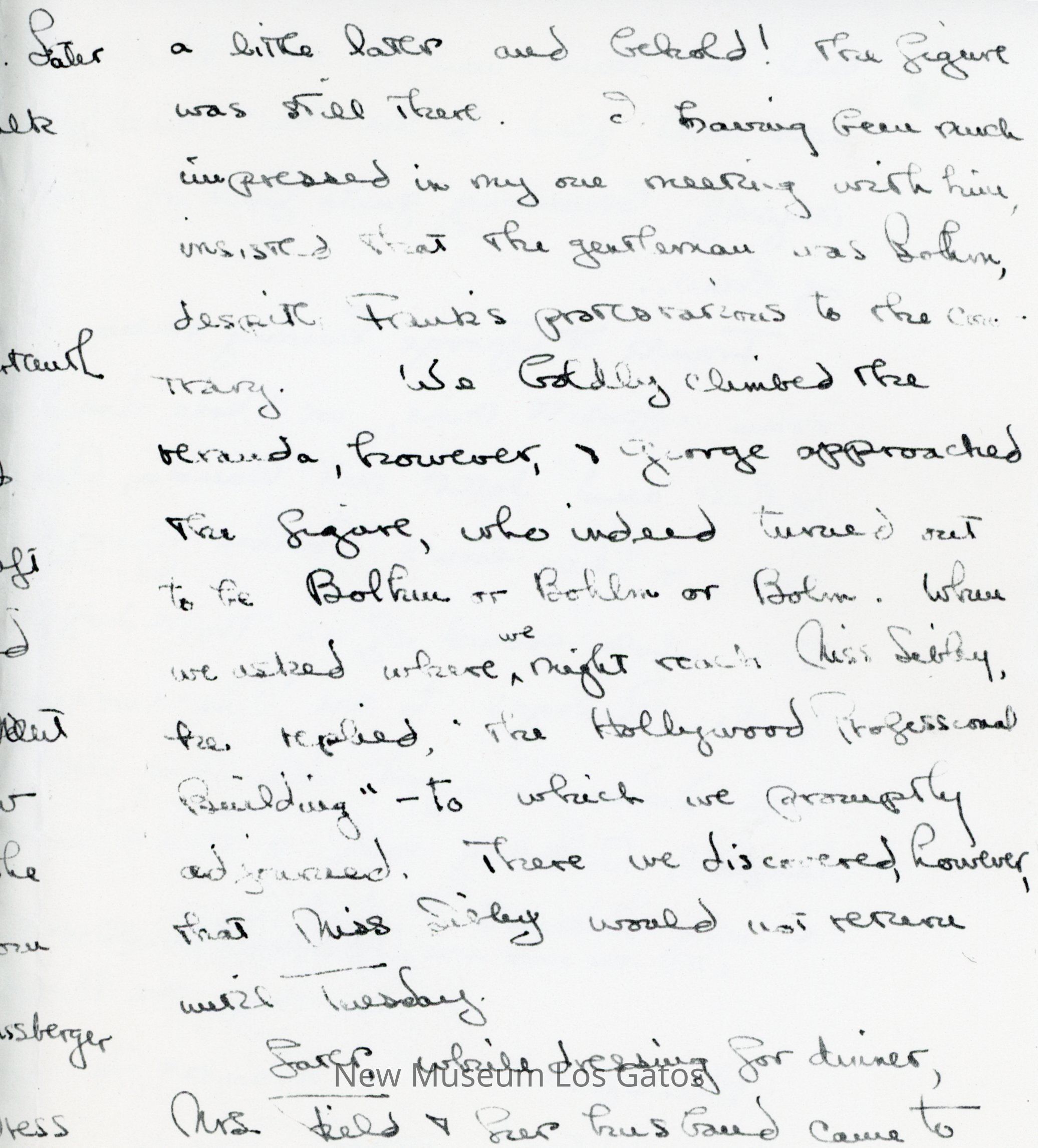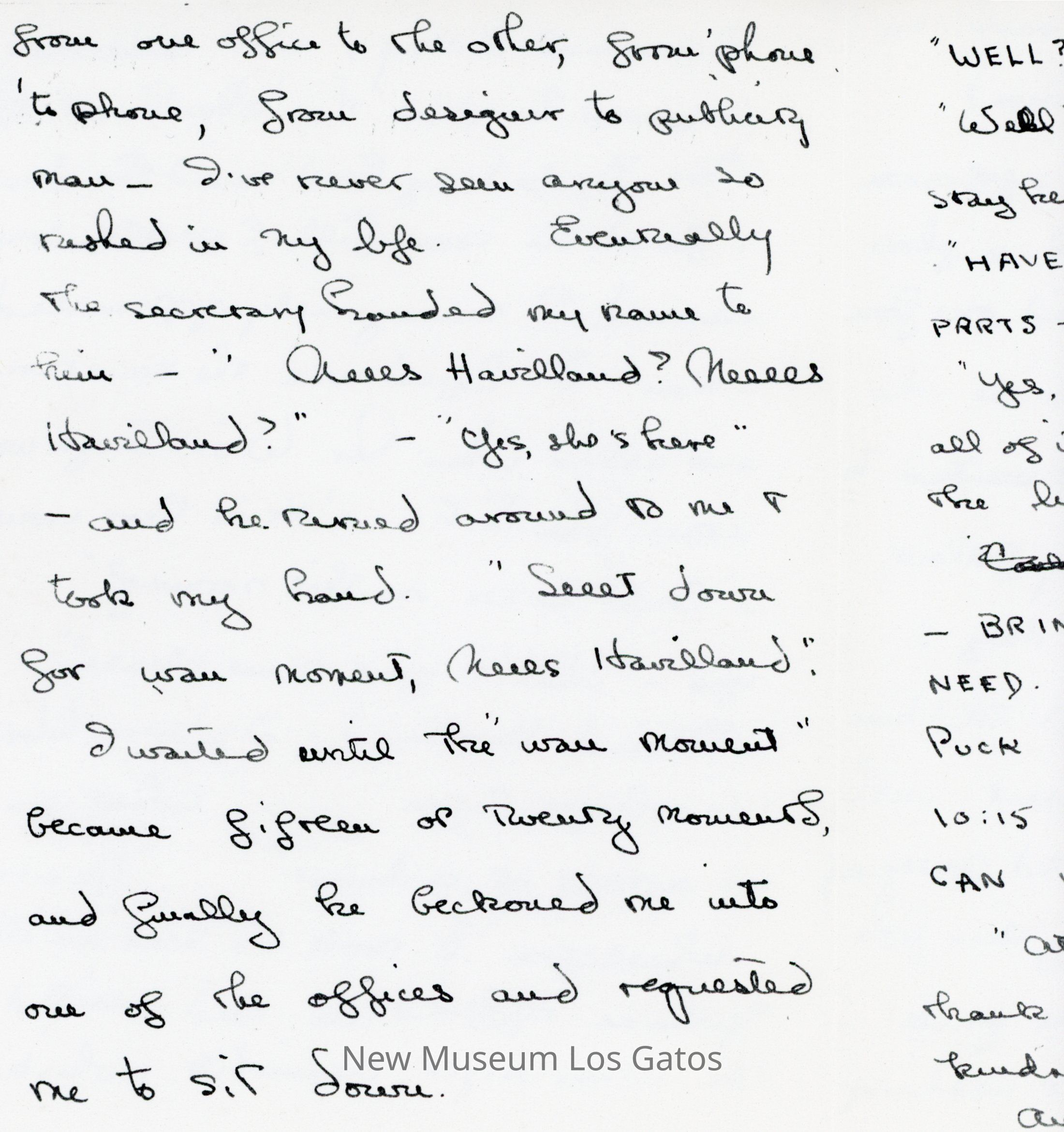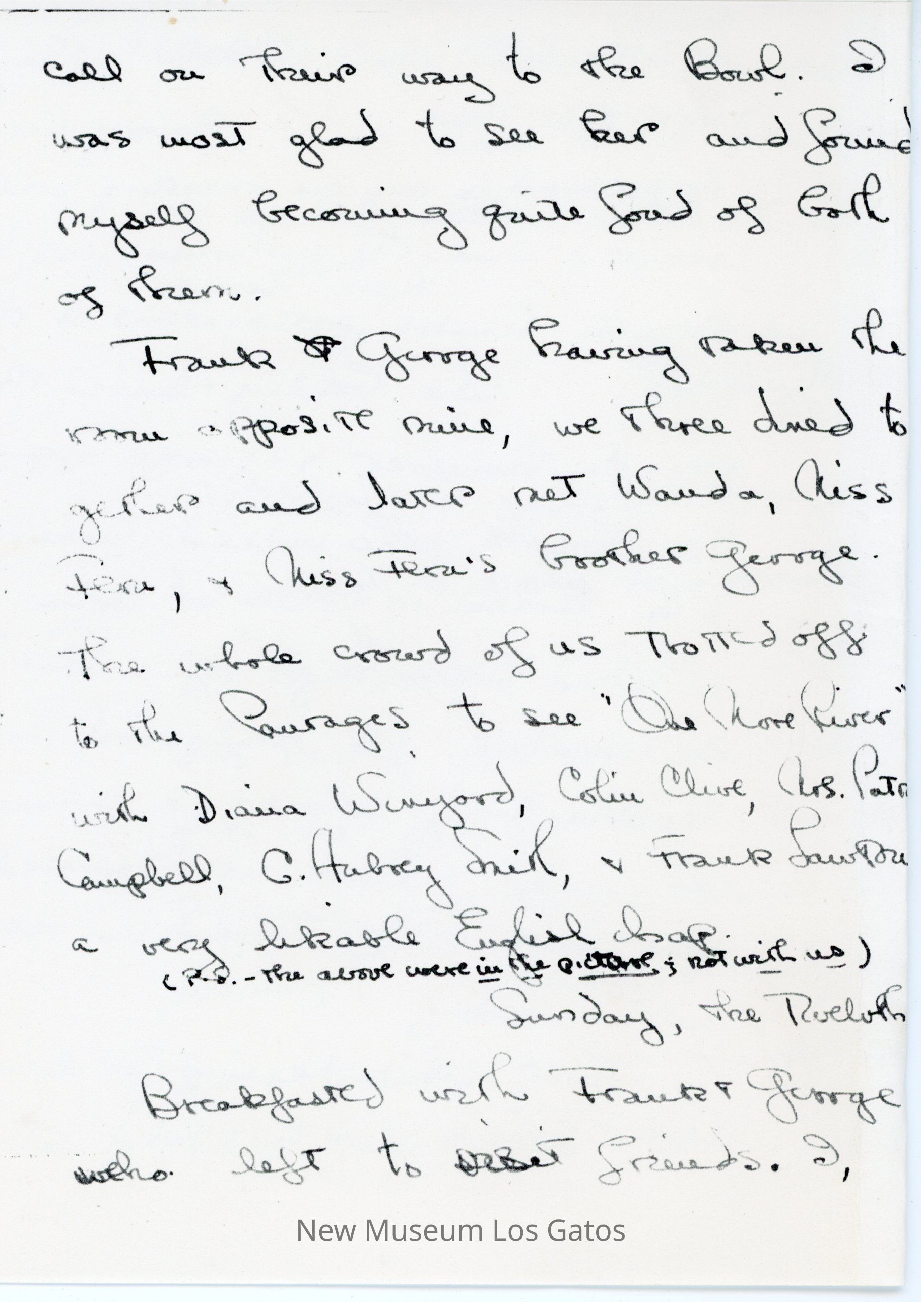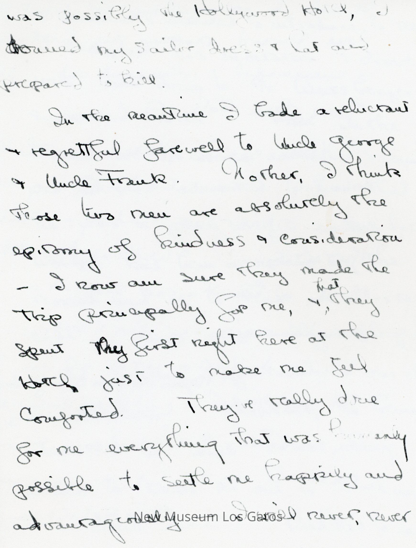 Photocopy of Olivia de Havilland's letter diary to her mother. She discusses her trip down to Hollywood with Frank and George, and meetings she had with studio executives.