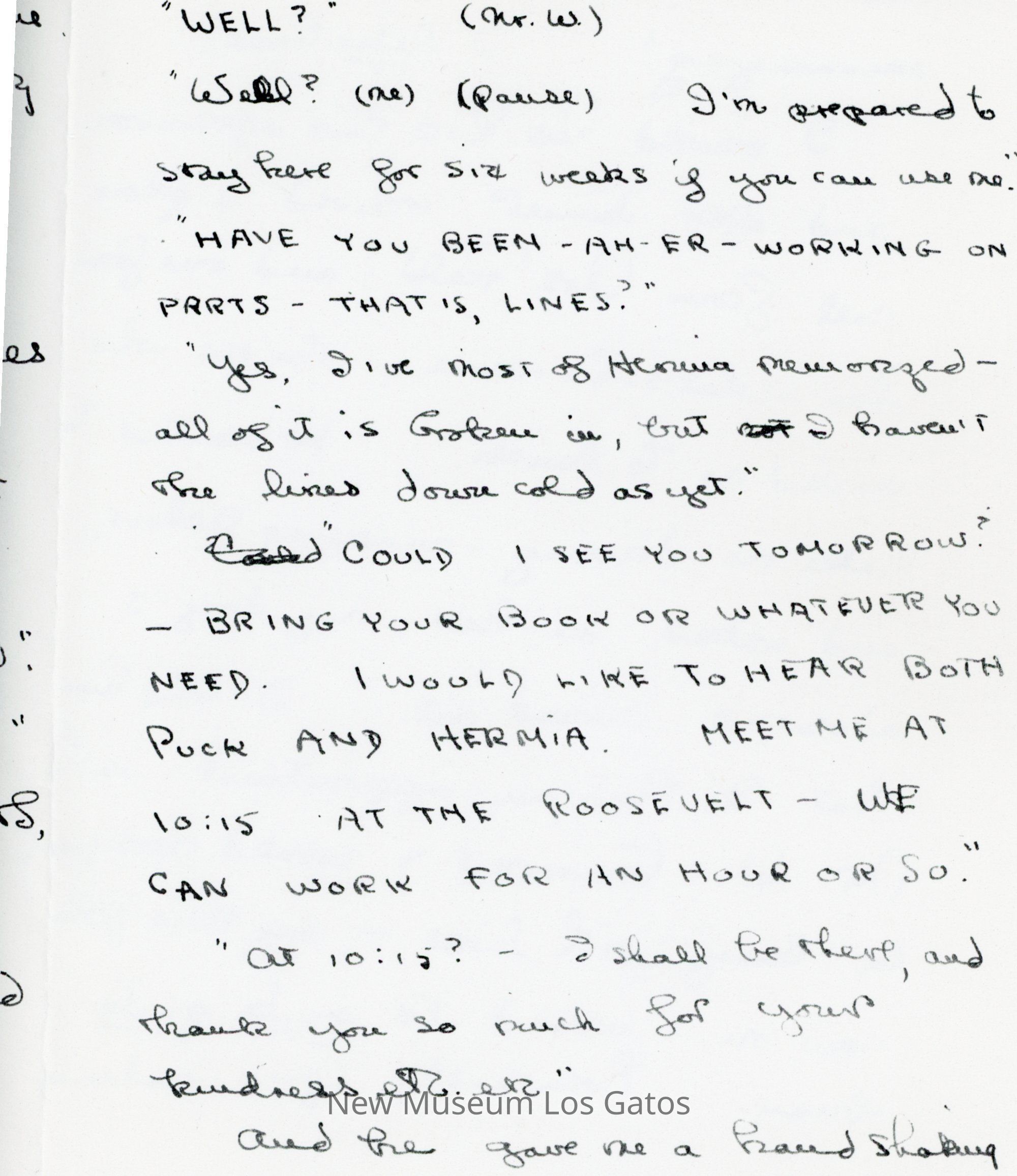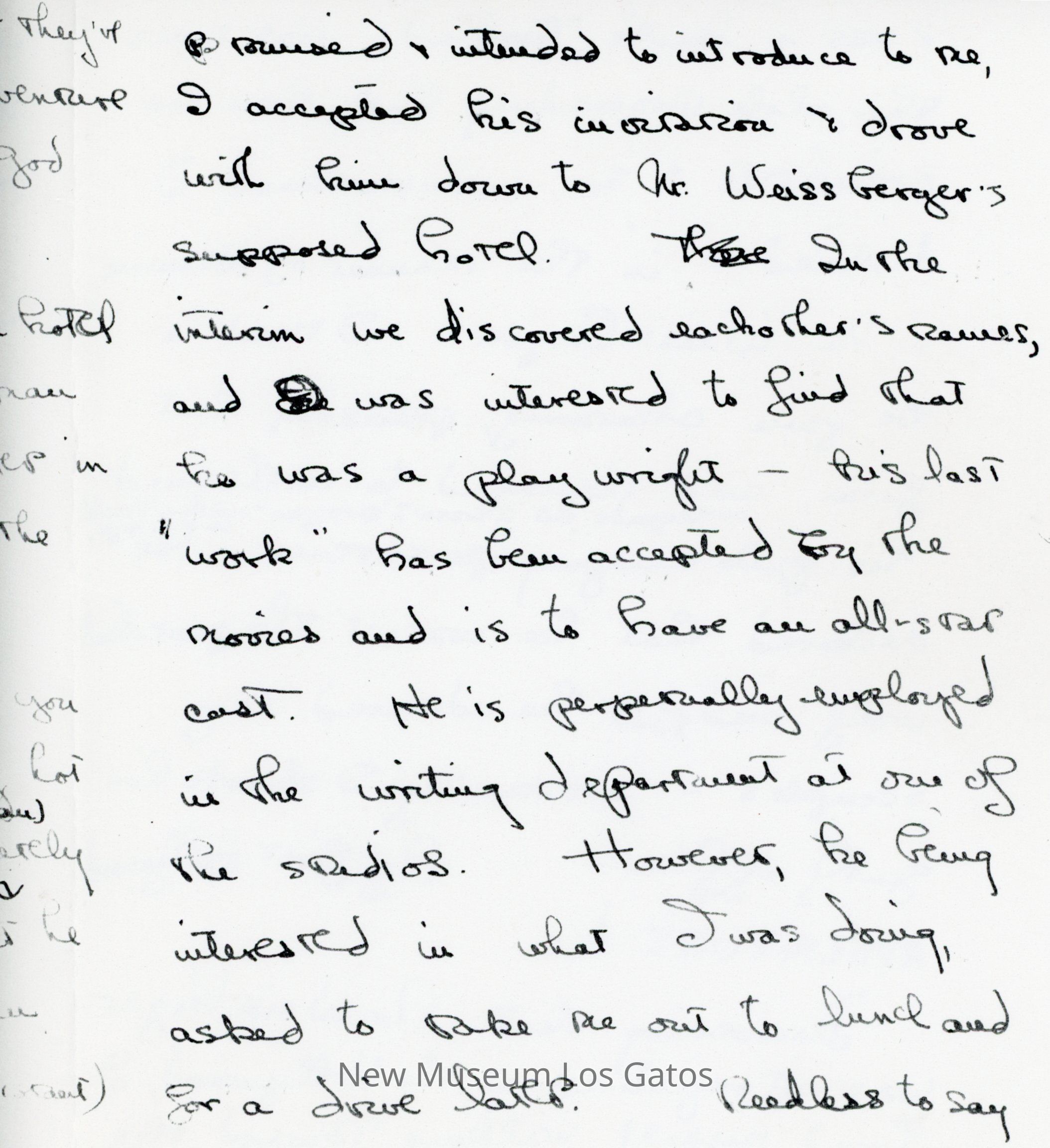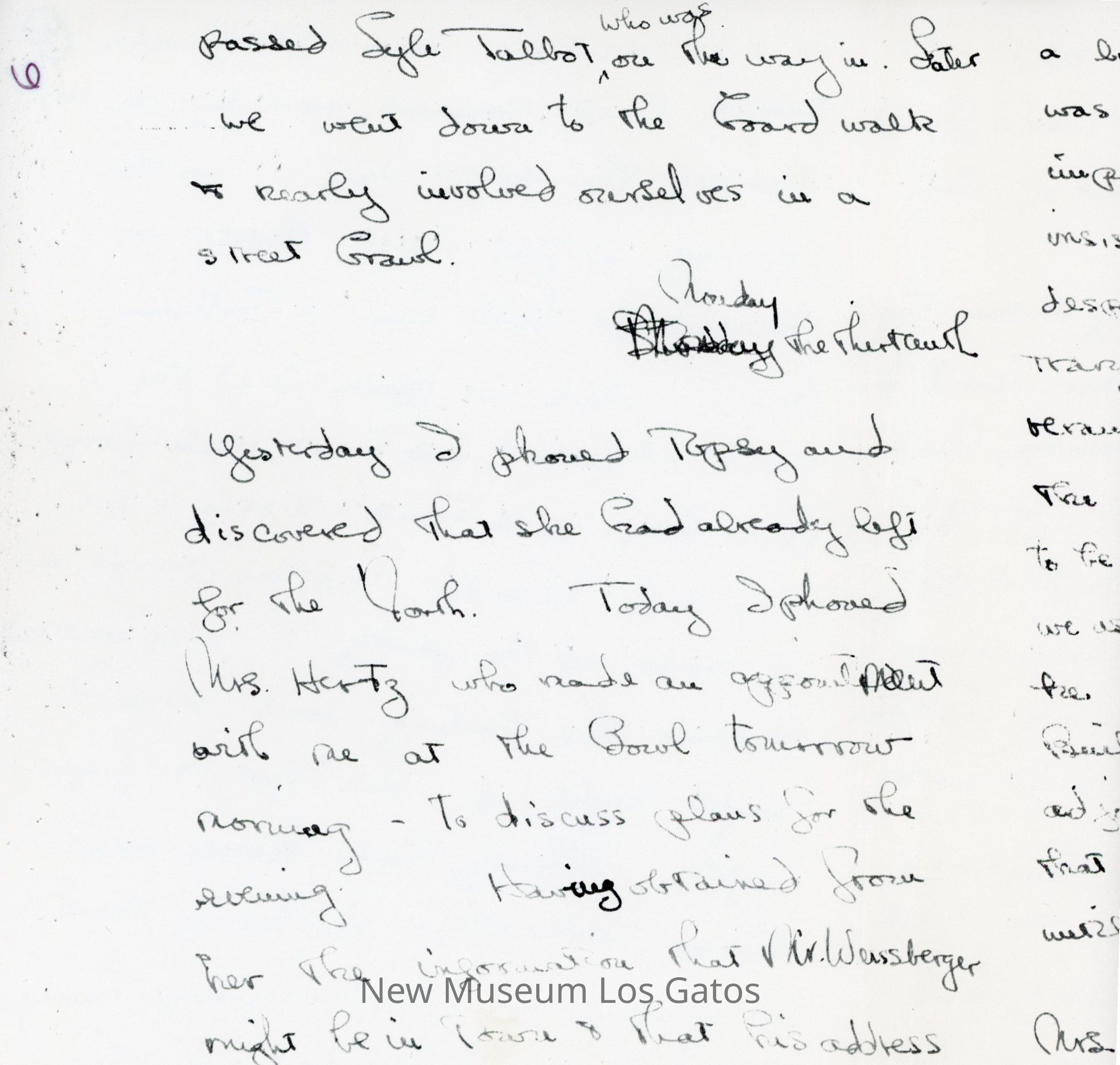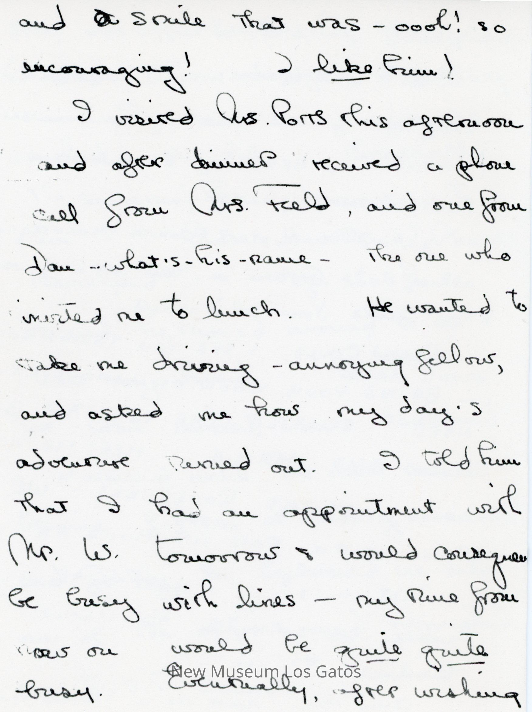 Photocopy of Olivia de Havilland's letter diary to her mother. She discusses her trip down to Hollywood with Frank and George, and meetings she had with studio executives.